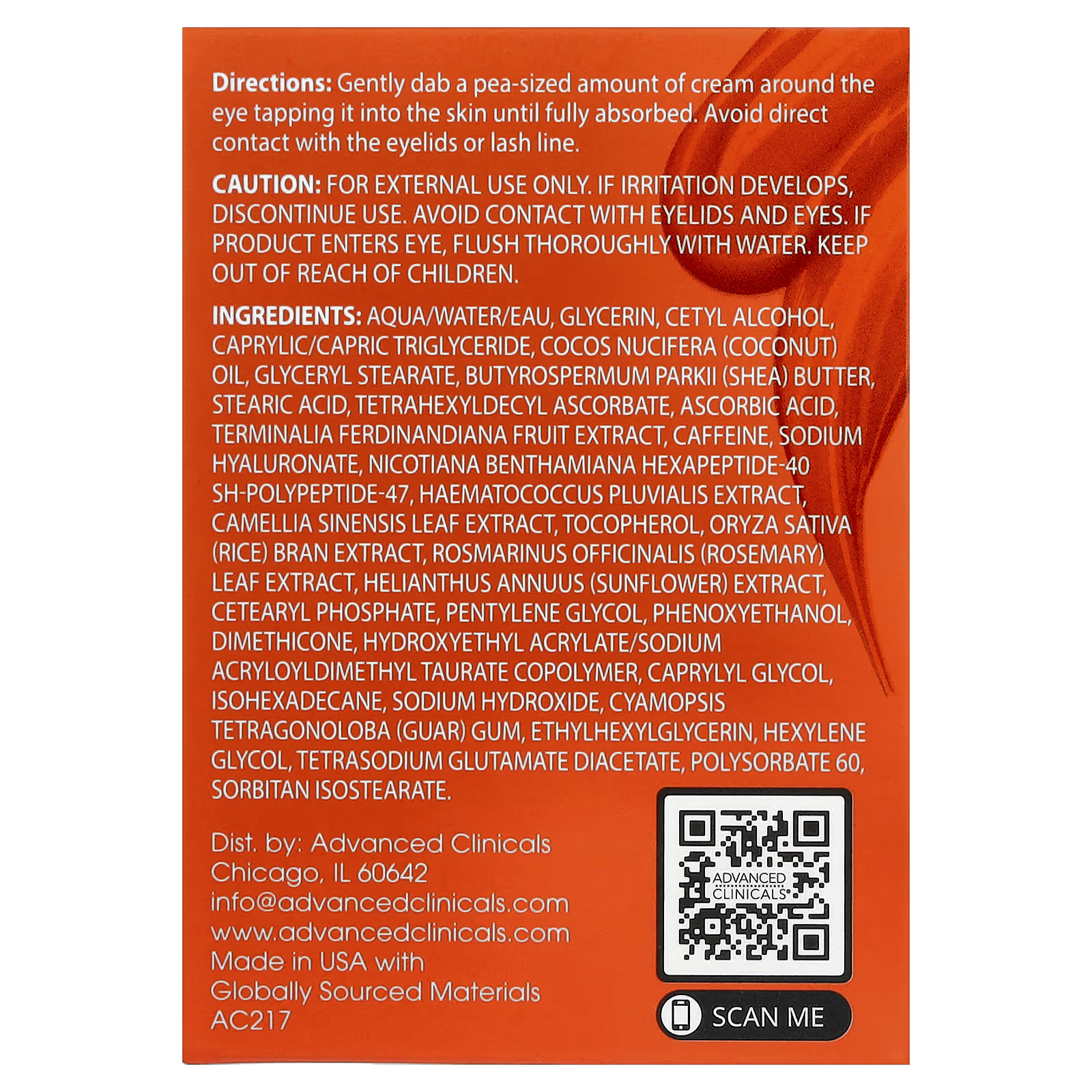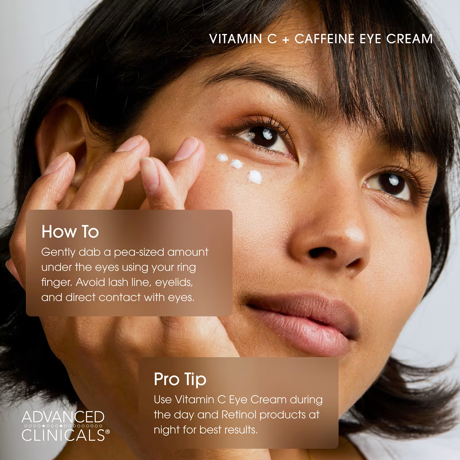 Gently dab a pea-sized amount of cream around the eye tapping it into the skin until fully absorbed. Avoid direct contact with the eyelids or lash line.Other ingredients