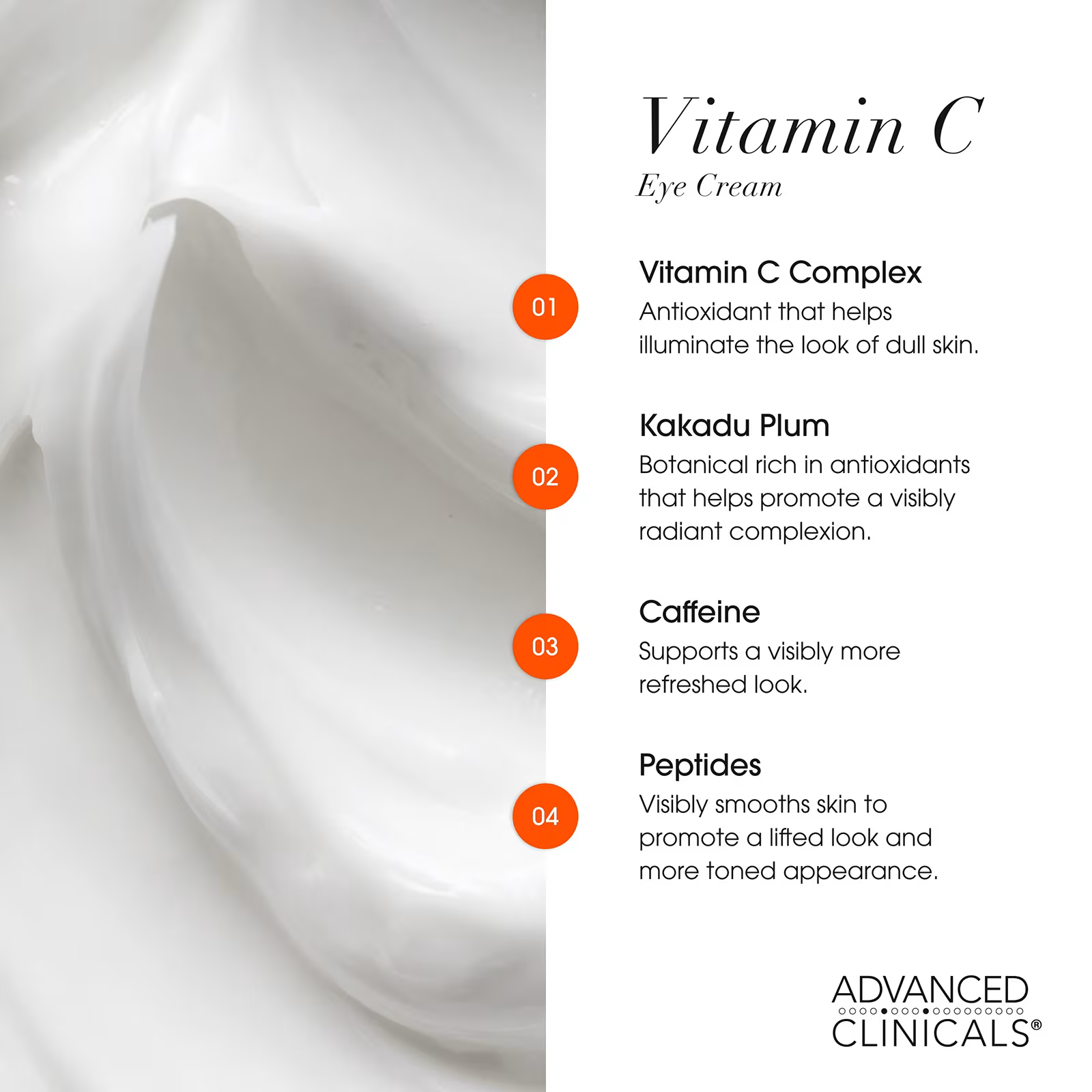 Advanced Clinicals, Brightening Vitamin C + Caffeine Eye Cream , 1 fl oz (30 ml)