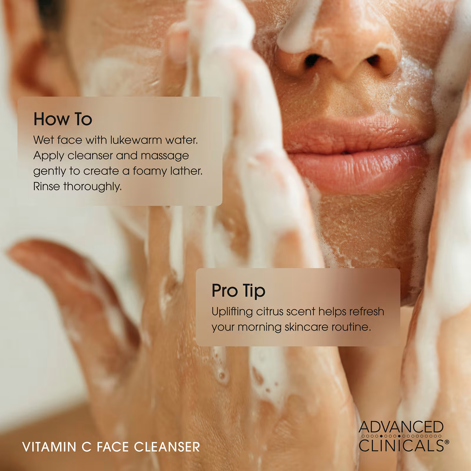 Wet your face with lukewarm water. Use fingertips to apply cleanser. Gently massage to generate a lather. Rinse clean and pat dry.