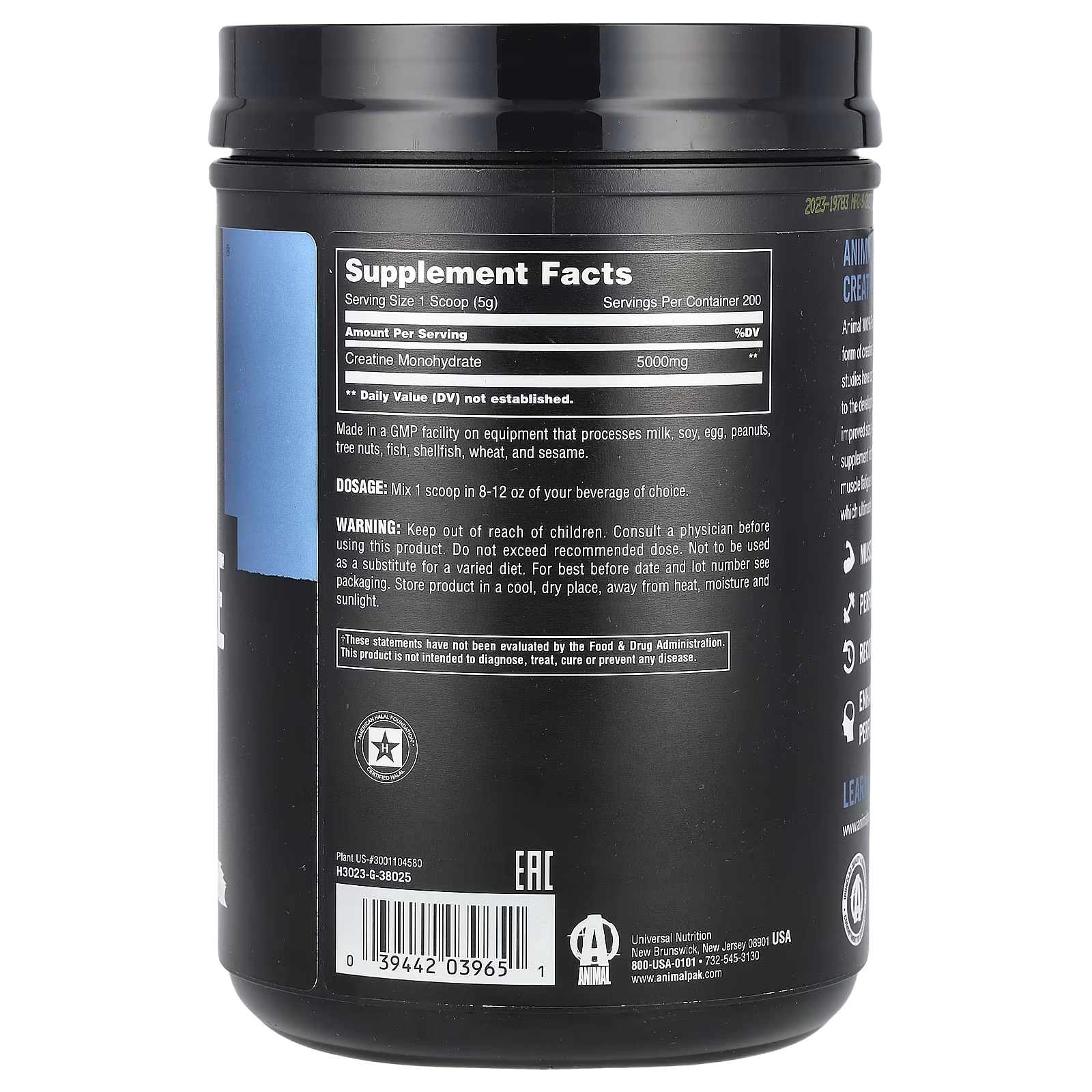 Animal 100% Pure Creatine Monohydrate™ offers a superior form of creatine monohydrate for optimal absorption. Scientific studies have confirmed that elevated creatine levels contribute to the development of stronger muscles, increased strength, improved size, and enhanced endurance. Incorporating this supplement into your daily routine helps with postponing muscle fatigue and expedites the body’s recovery process which ultimately maximizes your workout results.