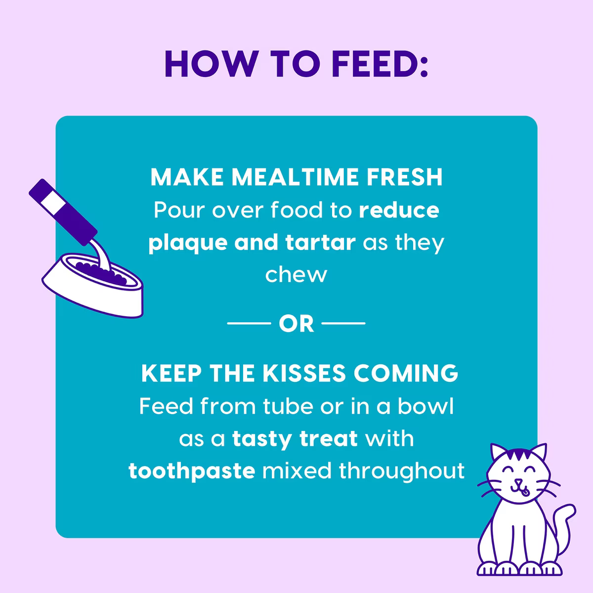 For best results, follow the feed instructions chart. Monitor your pet while eating and provide fresh water in a clean bowl daily. For cats 6 months and older. Consider calories compared to 10% of dietary intake. Product is intended for intermittent or supplemental feeding only.