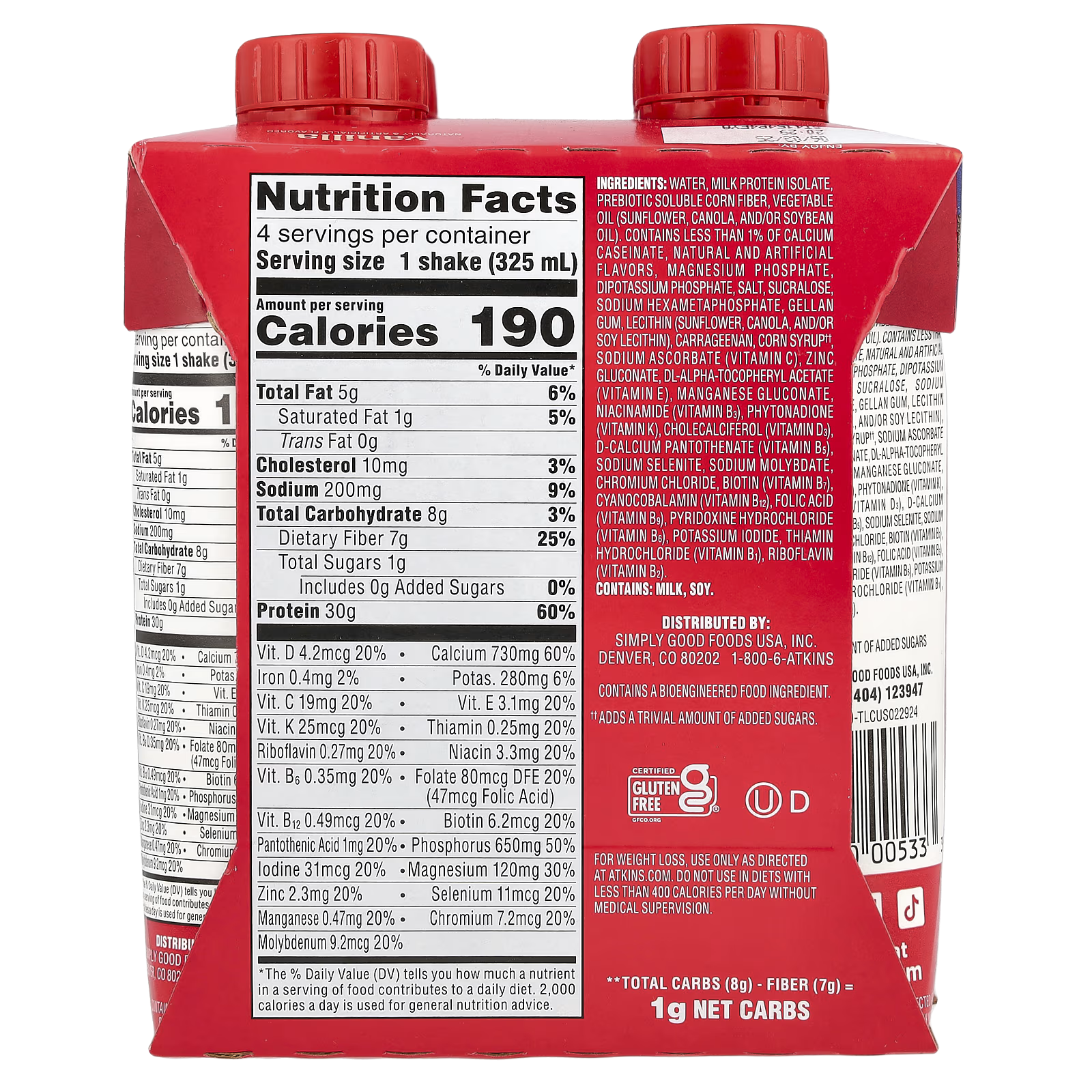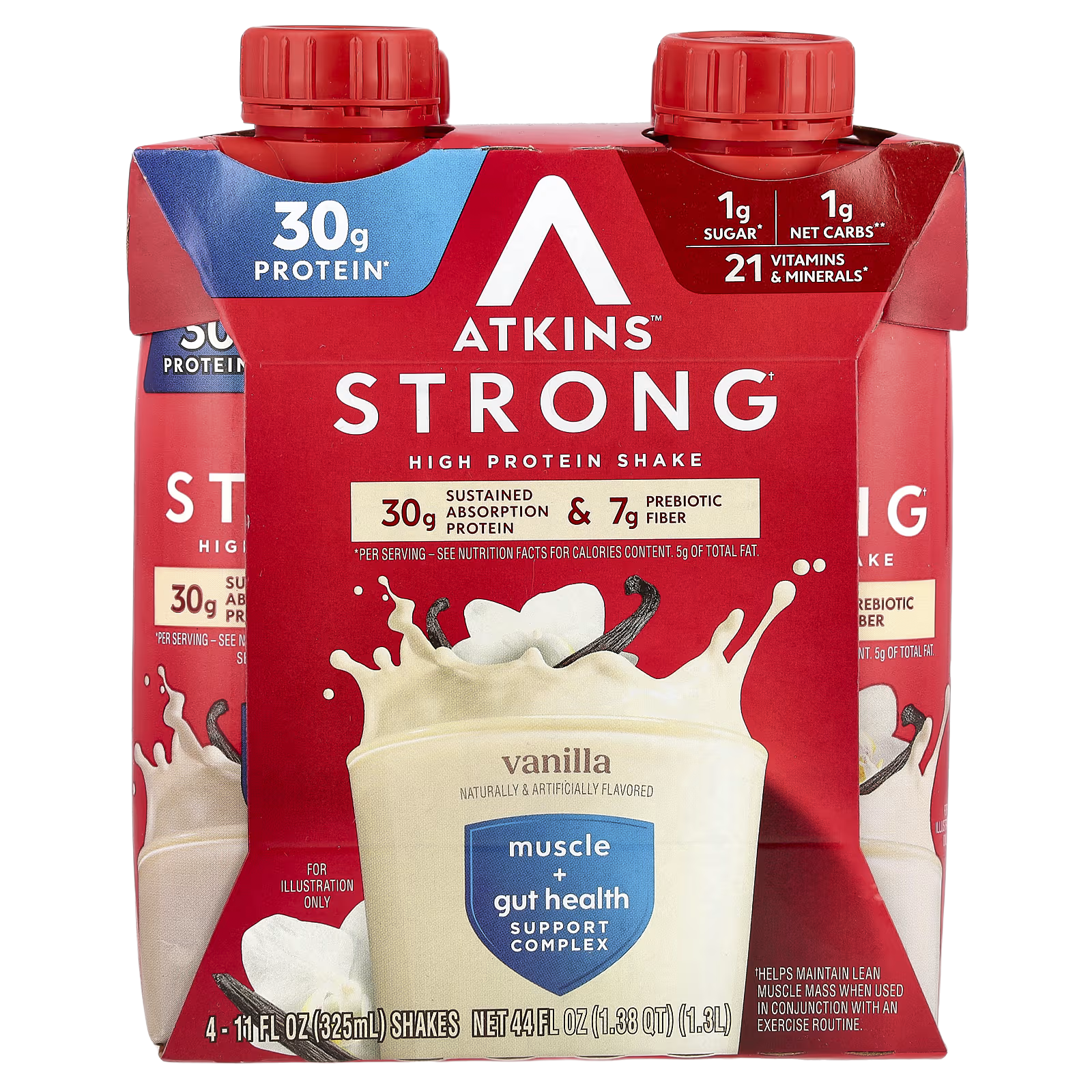 Atkins, Strong, High Protein Shake, Vanilla, 4 Shakes, 11 fl oz (325 ml) Each