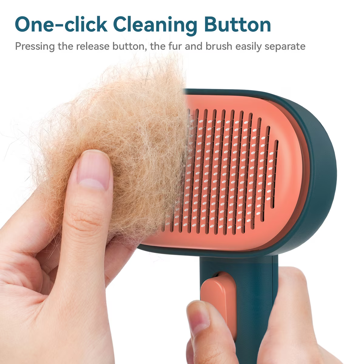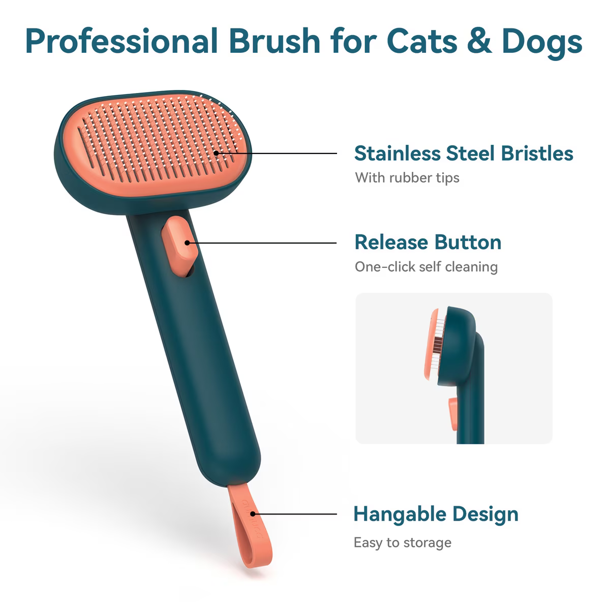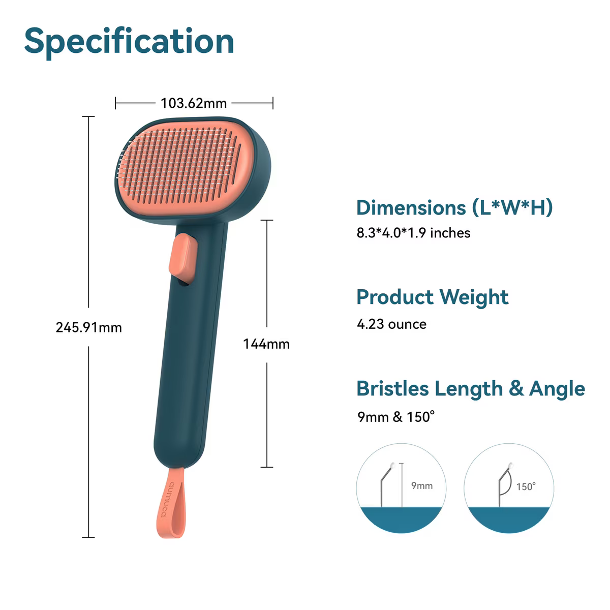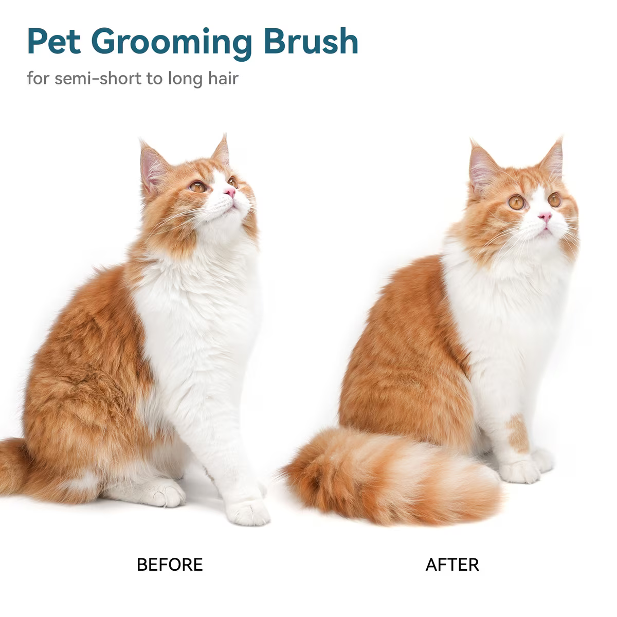 Make grooming your feline friend a breeze with the Aumuca Self-Cleaning Slicker Brush. Designed for daily use on all kitty breeds, this brush features 150° bent needles that effortlessly penetrate deep into the coat to remove loose hair, undercoat, and mats without causing any irritation to your furry friend’s skin. The rounded tips of the needles also provide a gentle massage that promotes blood circulation and improves coat health. And, when it’s time to clean the brush, simply press the release button to retract the needles and release the collected hair—no more struggling to pull hair out of the brush.