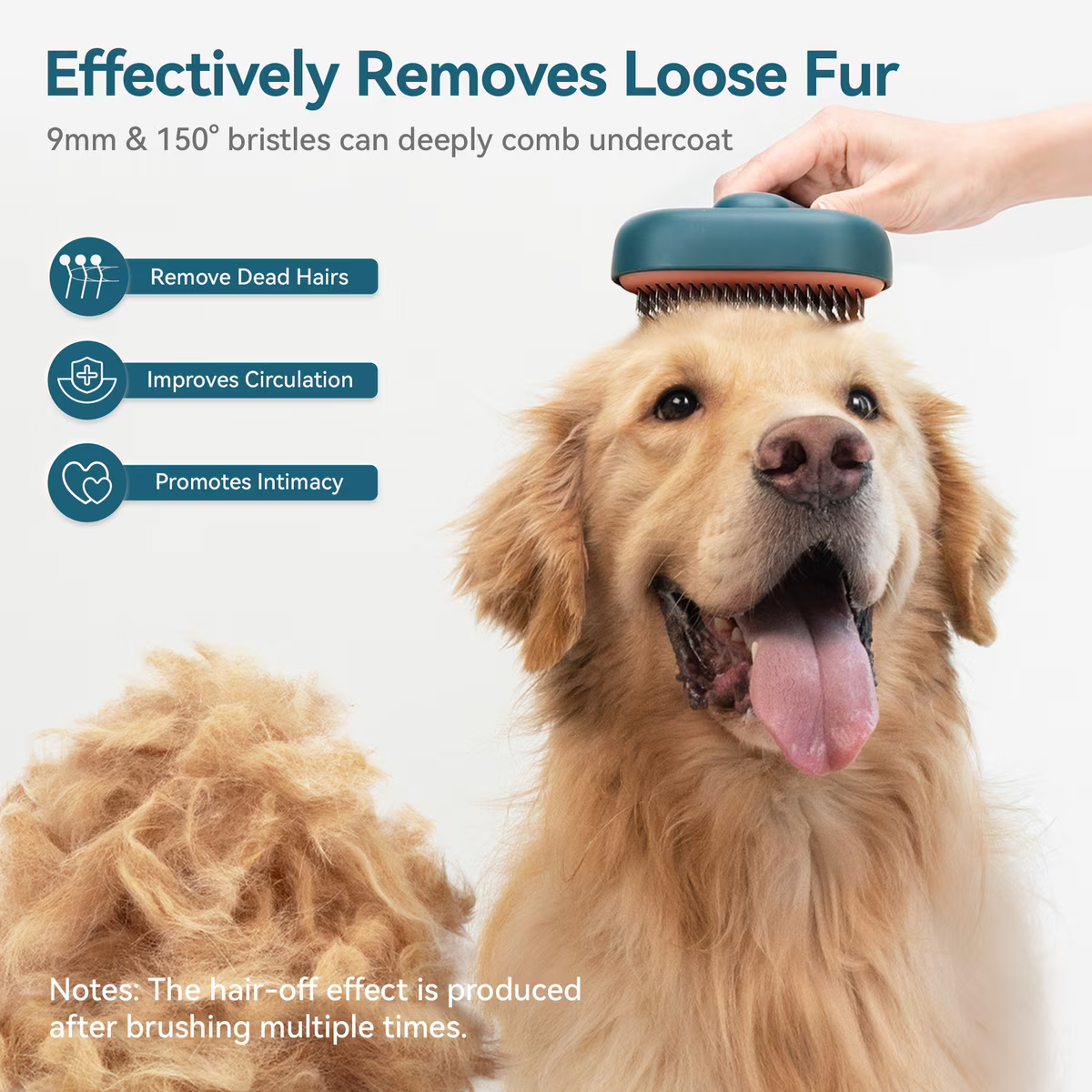 This brush features 150° bent needles that remove loose hair, undercoat, and mats without irritating the skin.