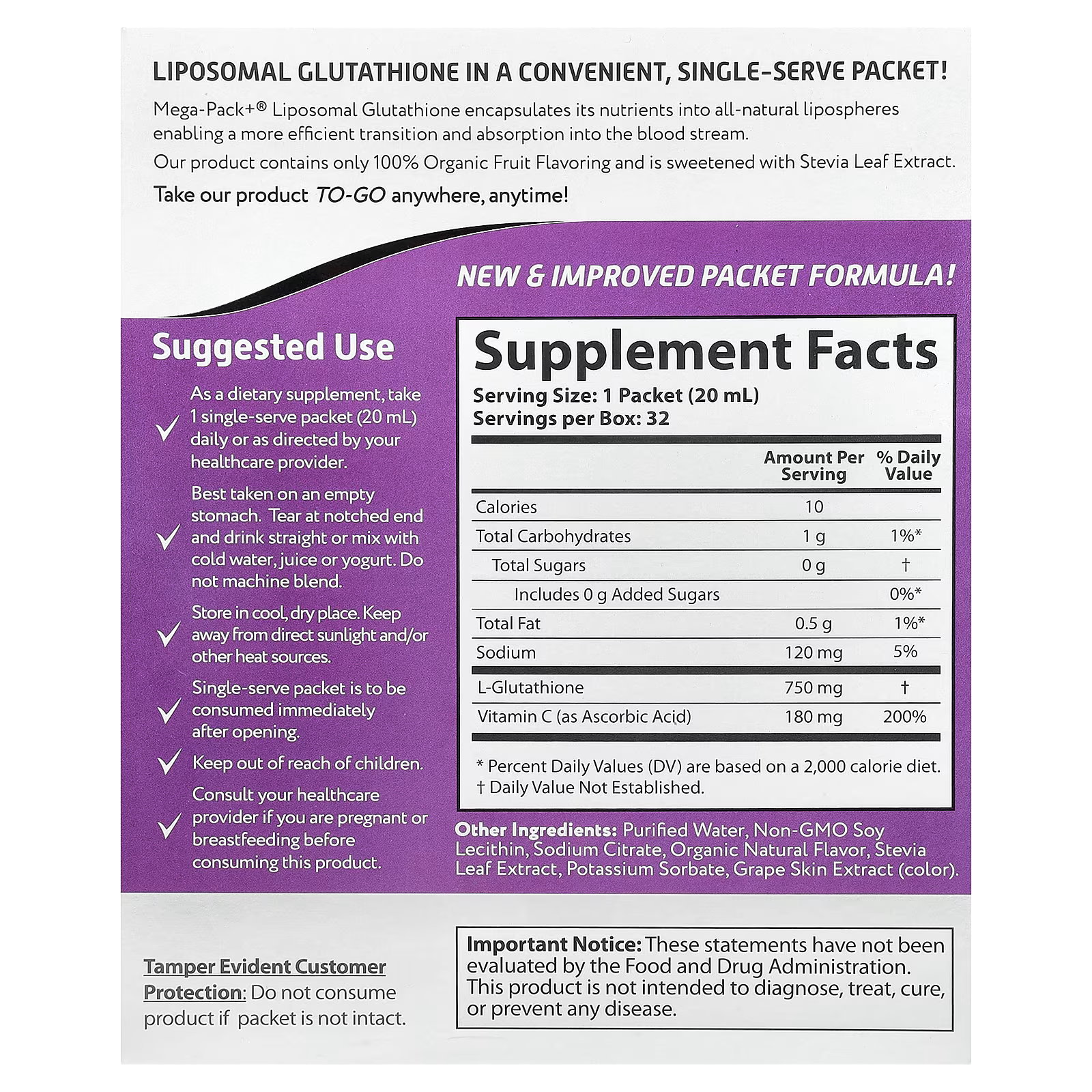 Tamper evident customer protection: Do not consume product if packet is not intact.
