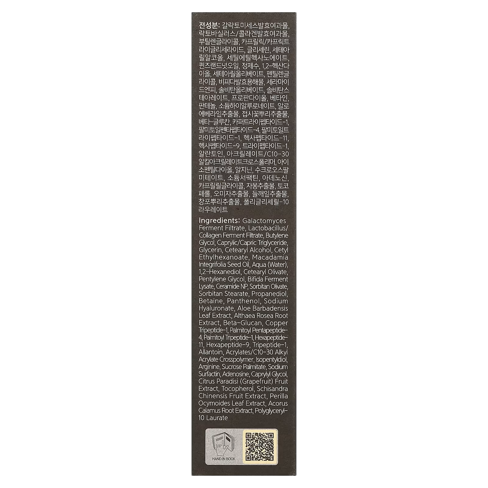 Galactomyces ferment filtrate, lactobacillus/collagen ferment filtrate, butylene glycol, caprylic/capric triglyceride, glycerin, cetearyl alcohol, cetyl ethylhexanoate, macadamia integrifolia seed oil, aqua (water), 1,2-hexanediol, cetearyl olivate, pentylene glycol, bifida ferment lysate, ceramide np, sorbitan olivate, sorbitan stearate, propanediol, betaine, panthenol, sodium hyaluronate, aloe barbadensis leaf extract, althaea rosea root extract, beta-glucan, copper tripeptide-1, palmitoyl pentapeptide- 4, palmitoyl tripeptide-1, hexapeptide- 11, hexapeptide-9, tripeptide-1, allantoin, acrylates/c10-30 alkyl acrylate crosspolymer, isopentyldiol, arginine, sucrose palmitate, sodium surfactin, adenosine, caprylyl glycol, citrus paradisi (grapefruit) fruit extract, tocopherol, schisandra chinensis fruit extract, perilla ocymoides leaf extract, acorus calamus root extract, polyglyceryl-10 laurate.