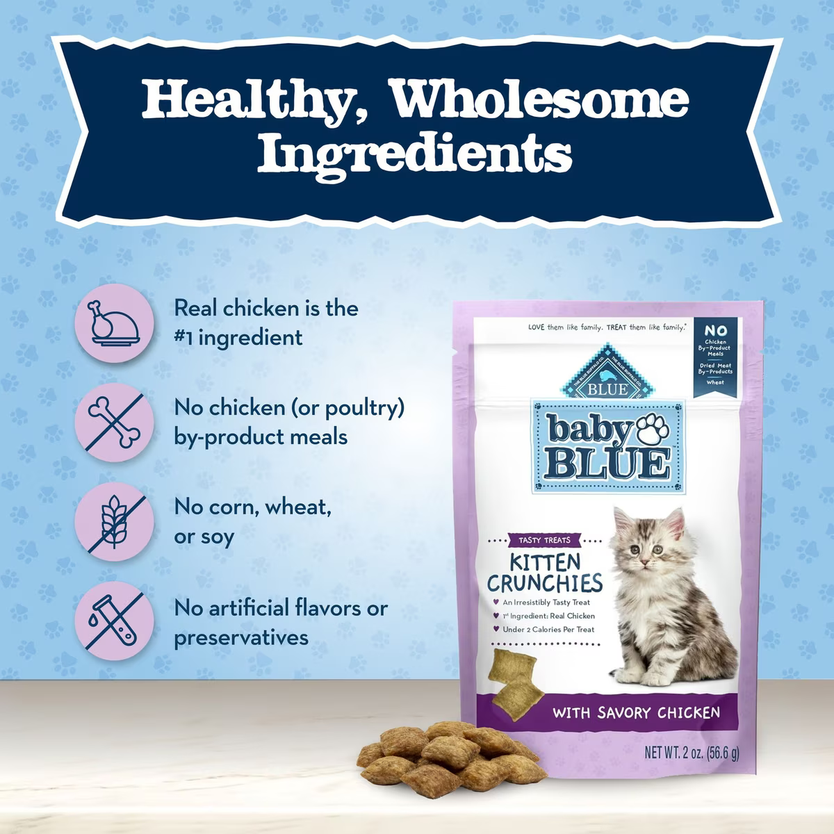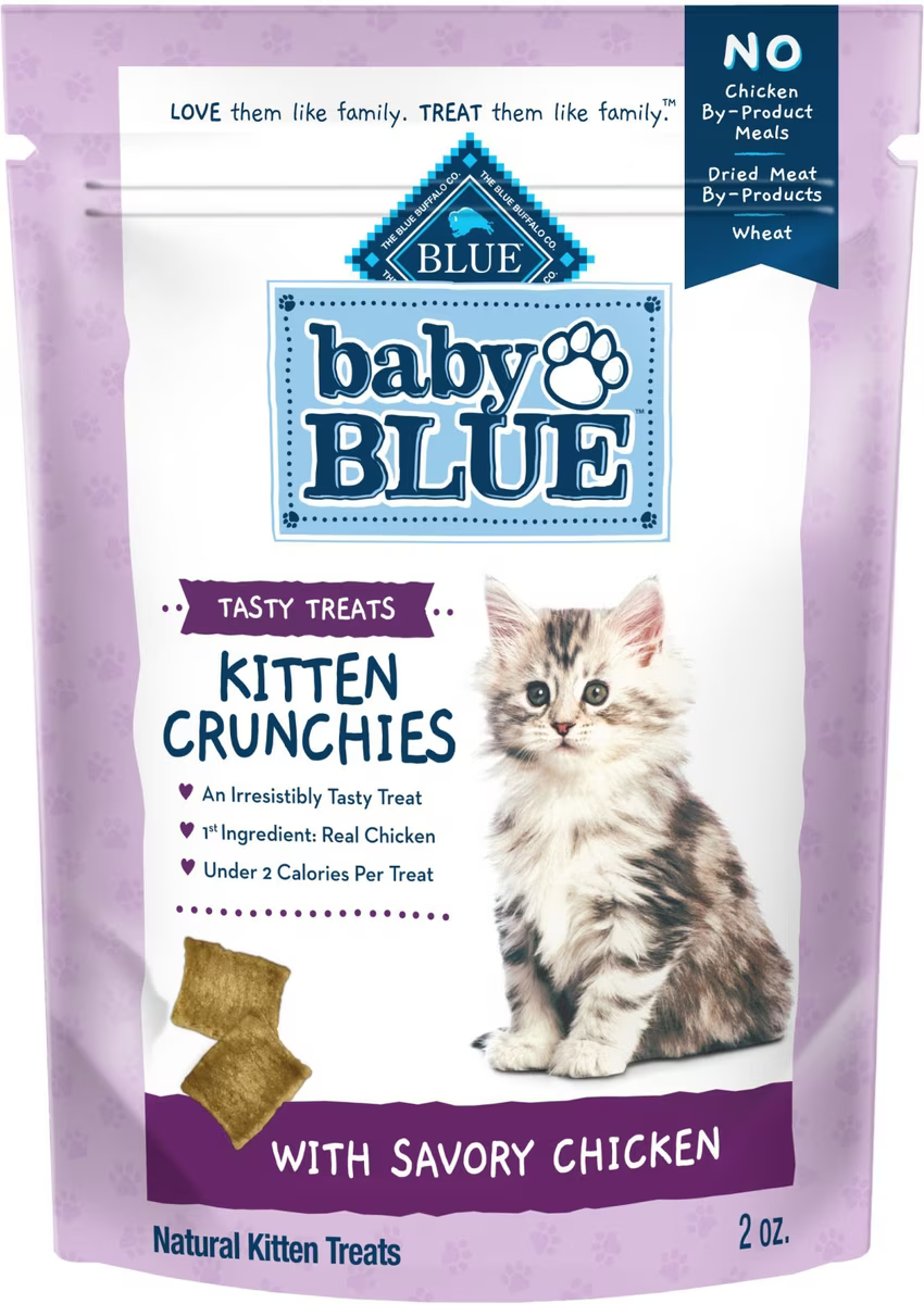 BLUE Baby BLUE Kitten Crunchies Savory Chicken Treats are healthy treats intended for intermittent or supplemental feeding only.