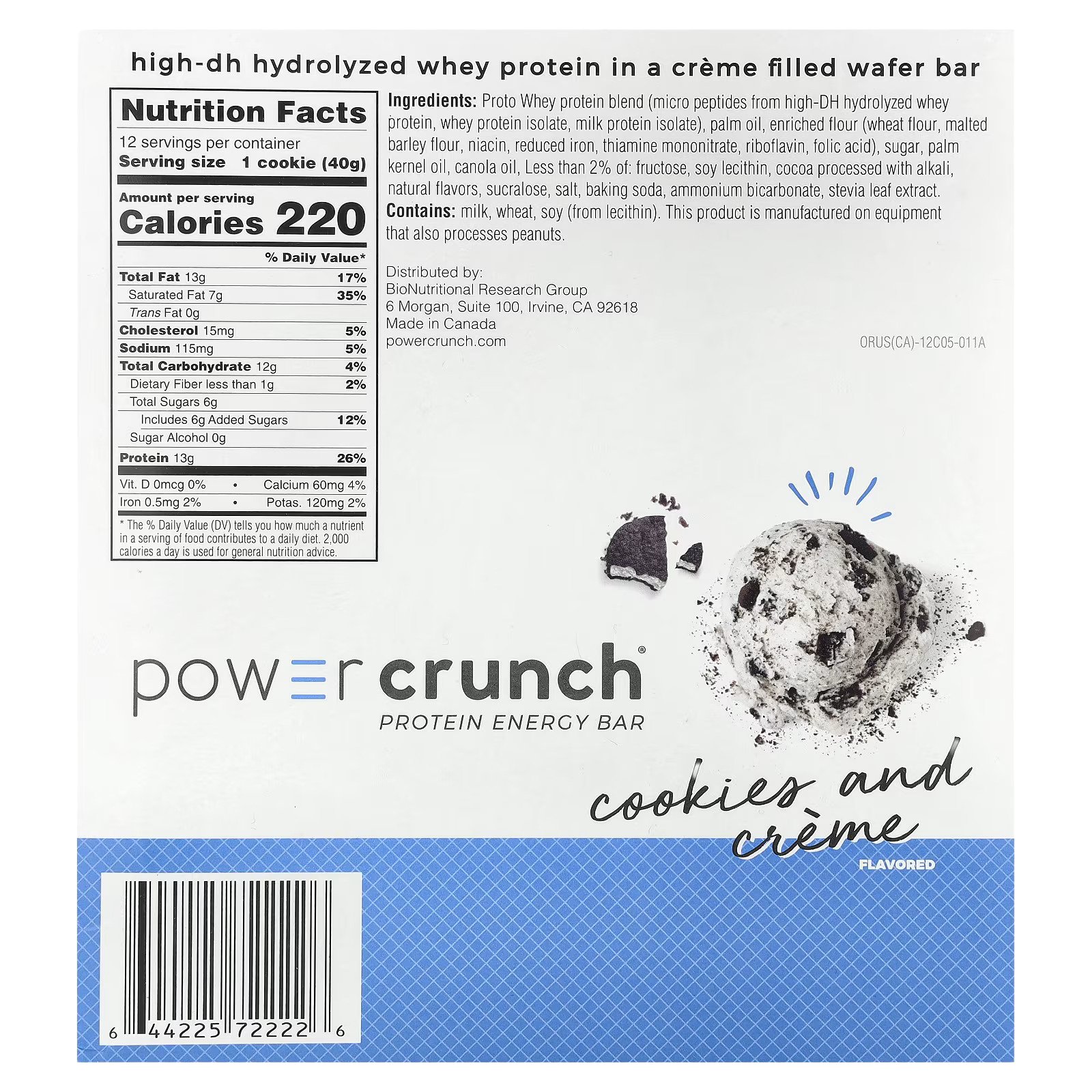 BNRG, Power Crunch®, Protein Energy Bar, Cookies and Crème, 12 Bars, 1.4 oz (40 g) Each