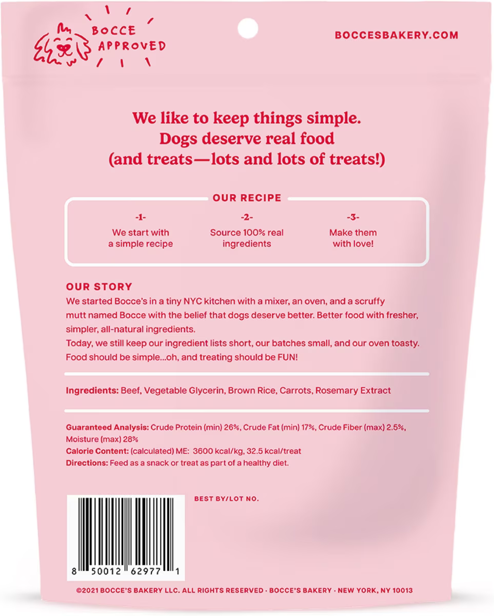 Bocce’s Bakery Grazers Beef Jerky Dog Treats, 4-oz pouch
