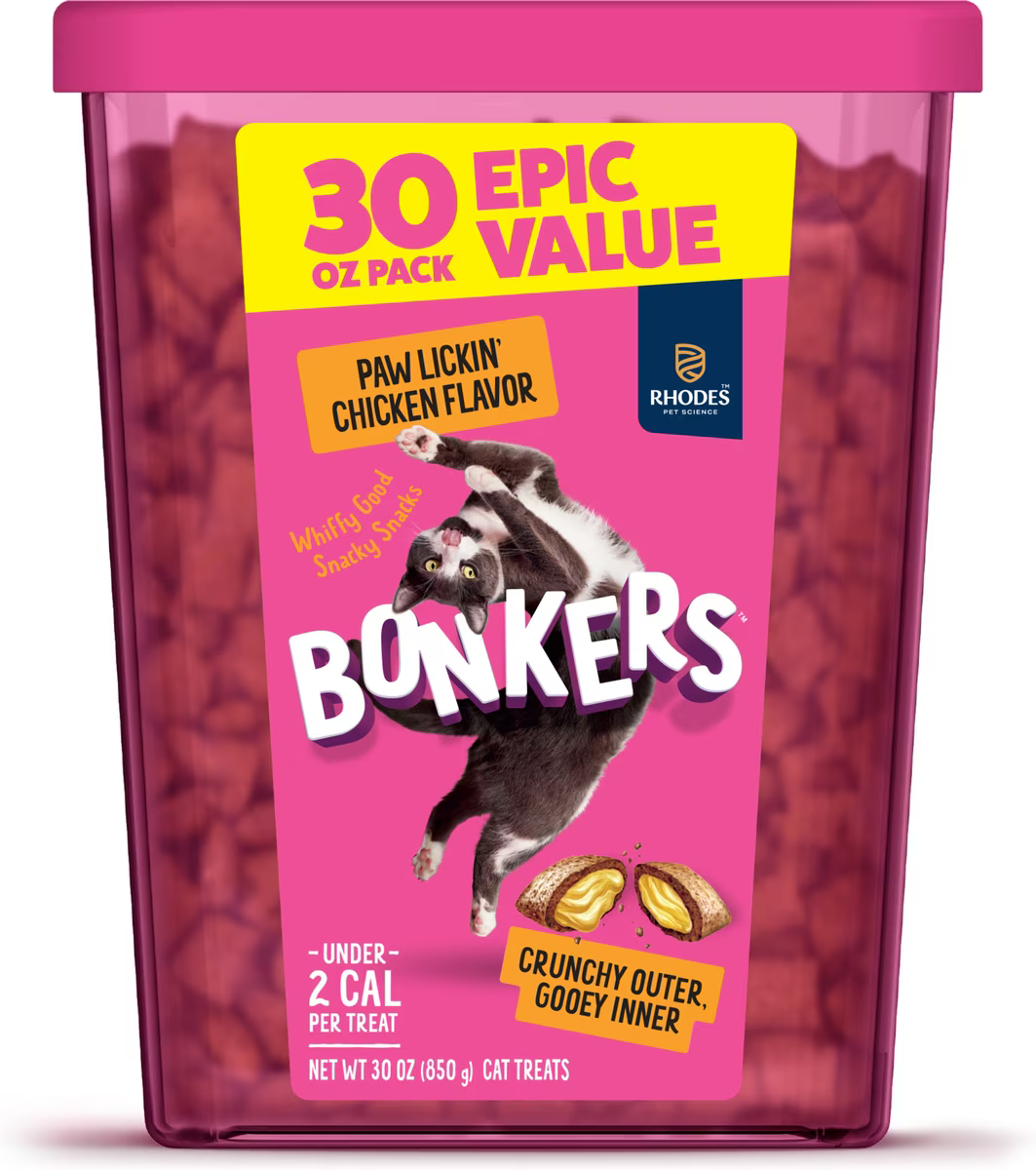 Bonkers Bites Paw Lickin Grain-Free Chicken Crunchy Cat Treats, 30-oz tub