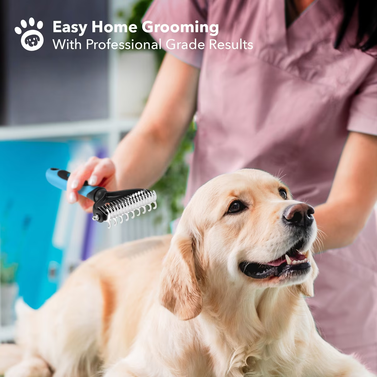 This premium-grade undercoat rake effectively removes loose hair, knots, and tangles from your pet’s coat, giving them a professional grooming experience at home.