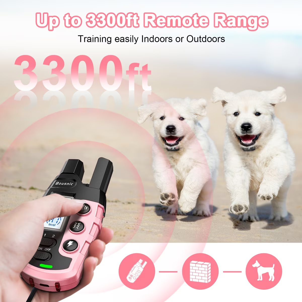 With an extensive 3300-foot range, this training collar provides your dog with the freedom to roam while still under your control. Its dual-channel design allows you to train two dogs simultaneously, making it a great choice for multi-dog households and outdoor adventures.