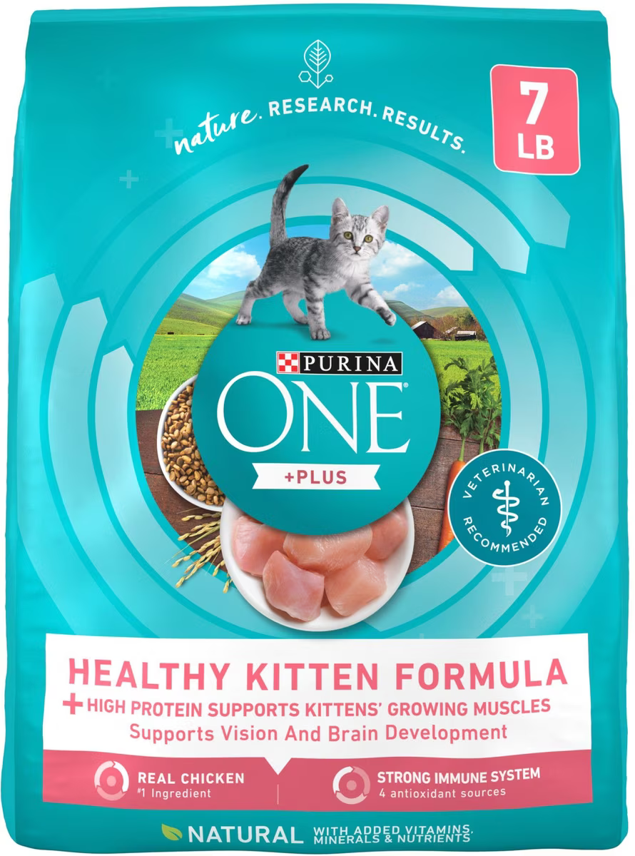 Bundle Fancy Feast Tender Feast Canned Food + Purina ONE Healthy Kitten Formula Dry Cat Food, 7-lb bag