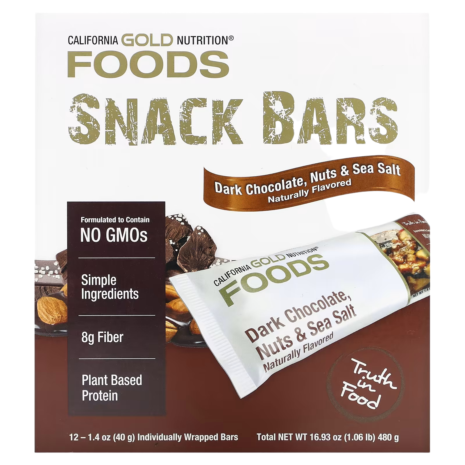 California Gold Nutrition, Foods, Dark Chocolate, Nuts, & Sea Salt Snack Bars, 12 Bars, 1.4 oz (40 g) Each