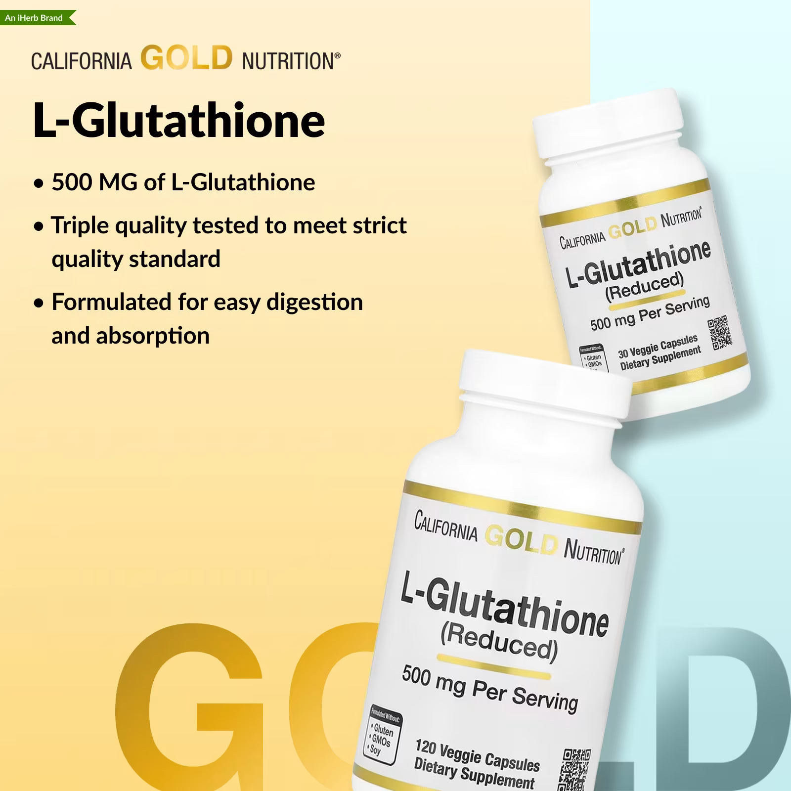 California Gold Nutrition, L-Glutathione (Reduced), 500 mg, 120 Veggie Capsules