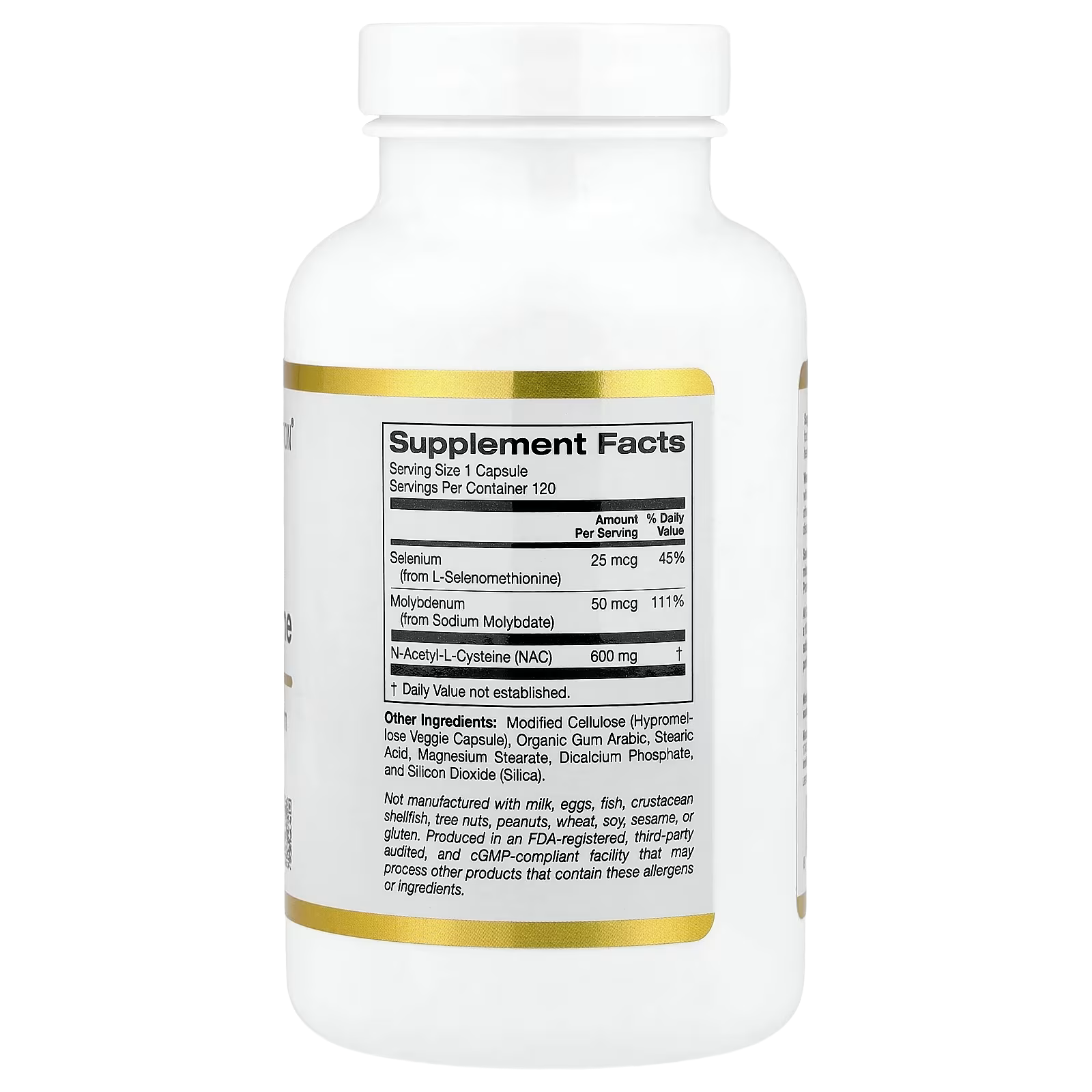 California Gold Nutrition® NAC (N-Acetyl-L-Cysteine) contains a combination of N-acetyl-L-cysteine amino acid, selenium and molybdenum to help support cellular health*.