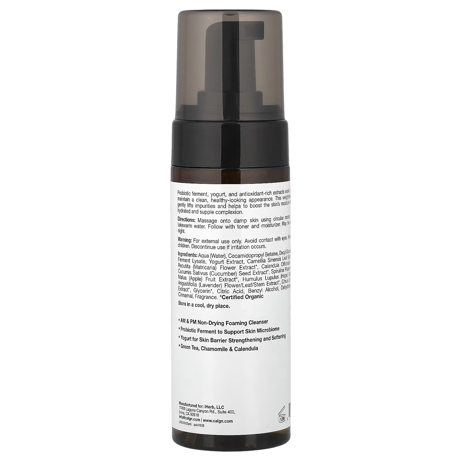 Clean, soften, and strengthen skin with California Gold Nutrition® Beauty’s Probiotic Foaming Cleanser. Made with probiotic ferment, this cleanser helps to balance your natural skin microbiome. The addition of yogurt and antioxidant-rich extracts works to soothe skin and maintain a smooth, soft, and healthy-looking appearance. You can count on this weightless foamy cleanser to gently lift impurities and help to boost the skin’s moisture barrier, revealing a hydrated and supple complexion.