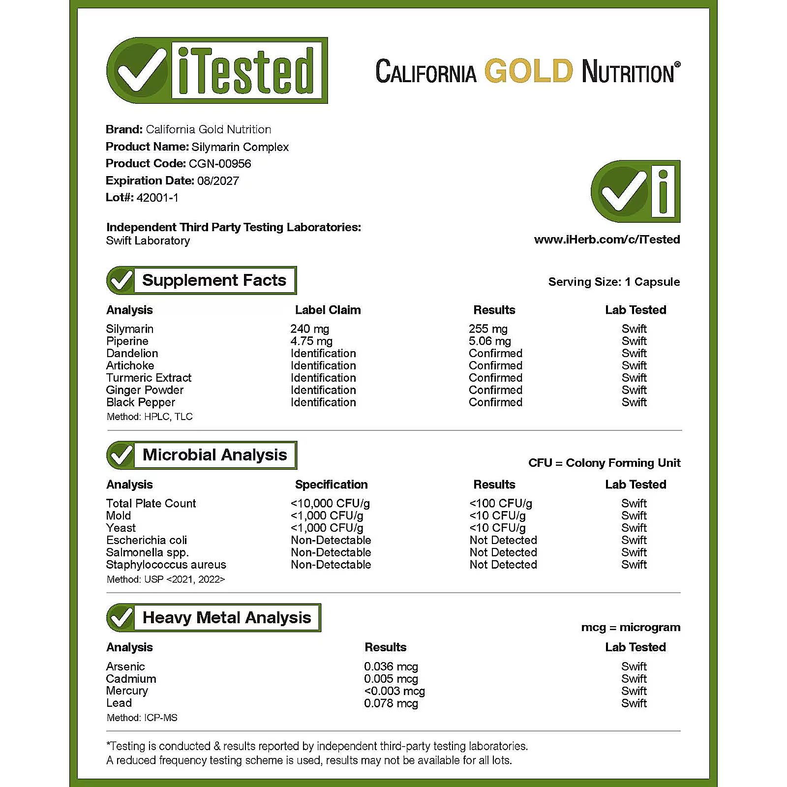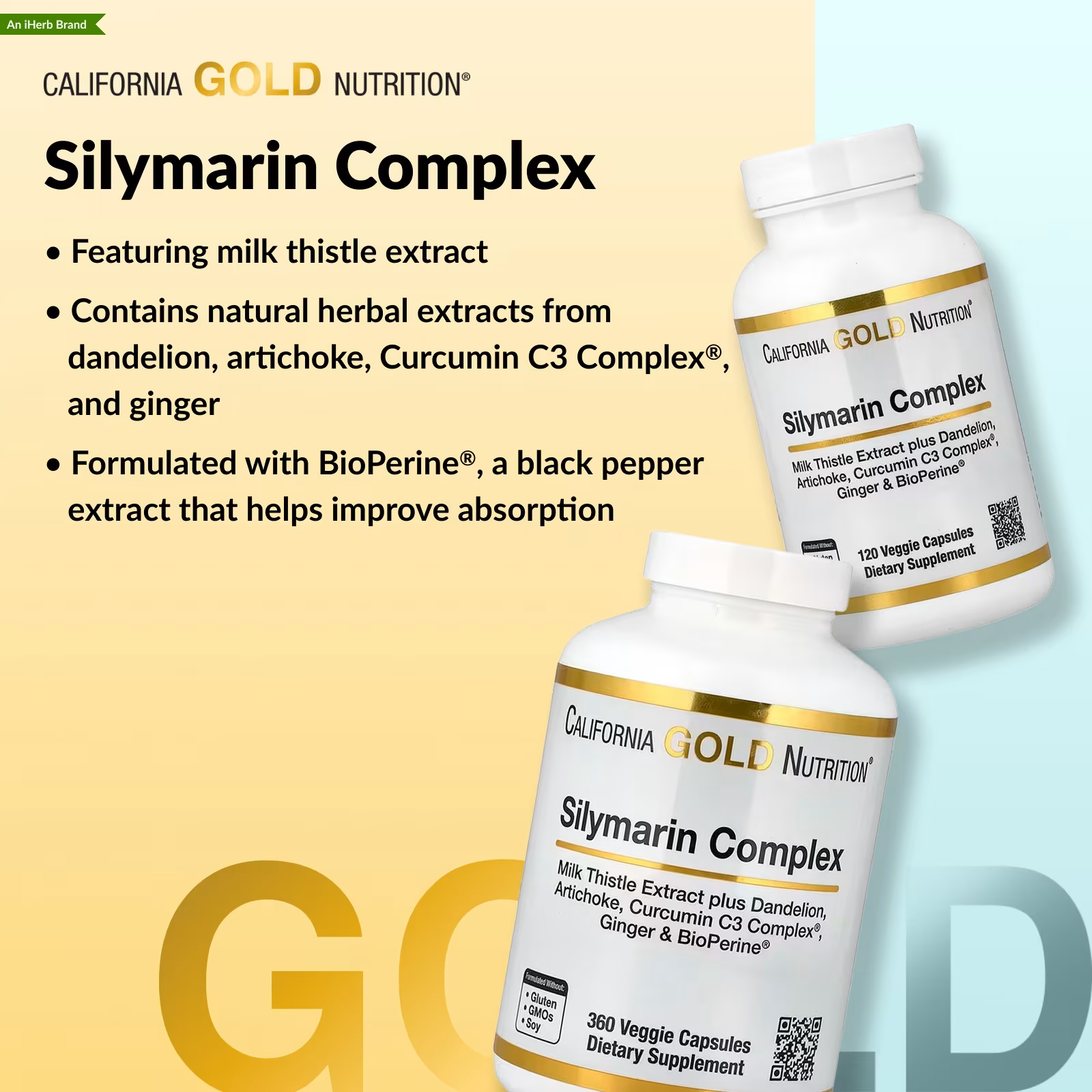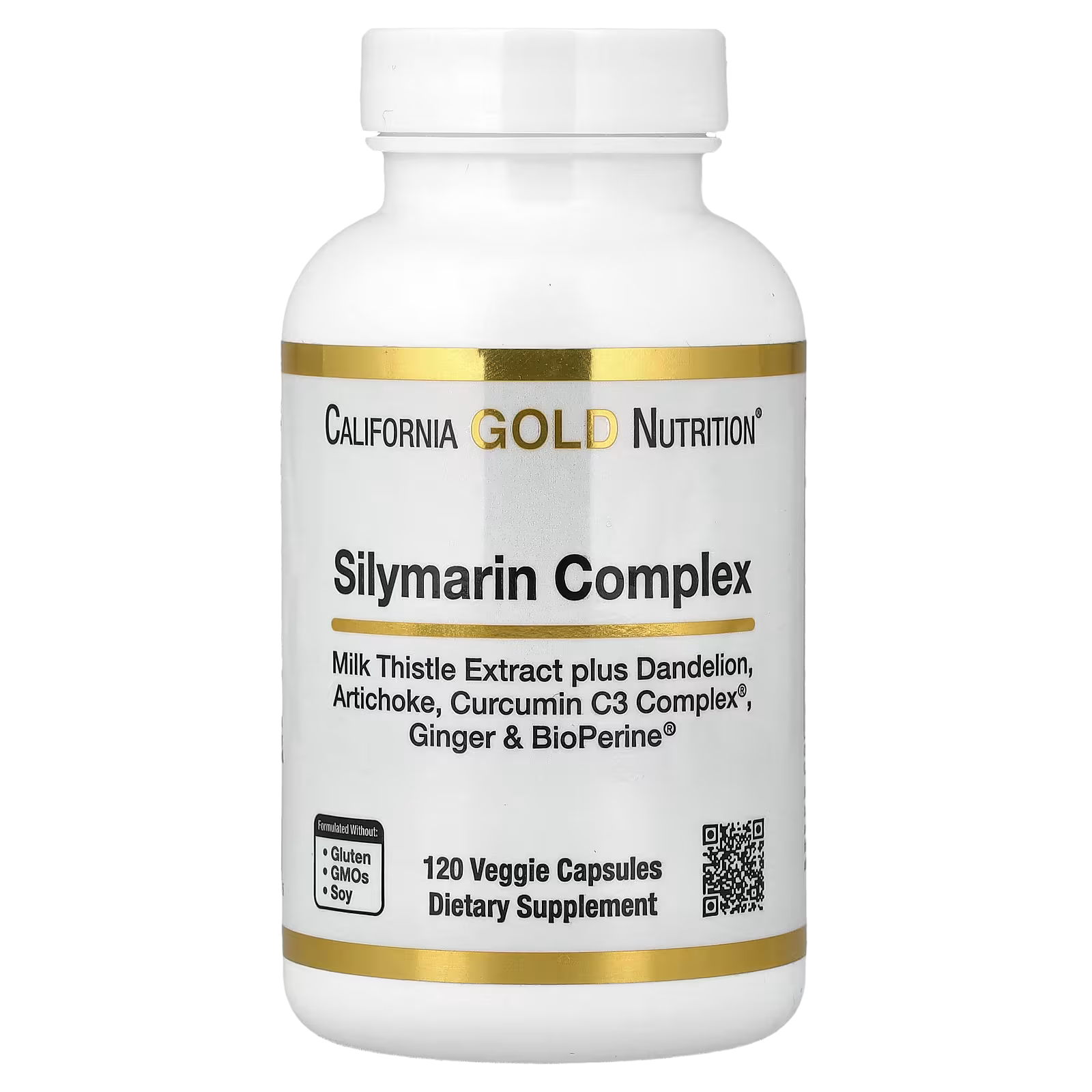 California Gold Nutrition® Silymarin Complex is formulated with 5 herbal extracts and BioPerine®, a black pepper extract that helps improve absorption. It is suitable for vegetarians and vegans and formulated without gluten, GMOs, or soy.