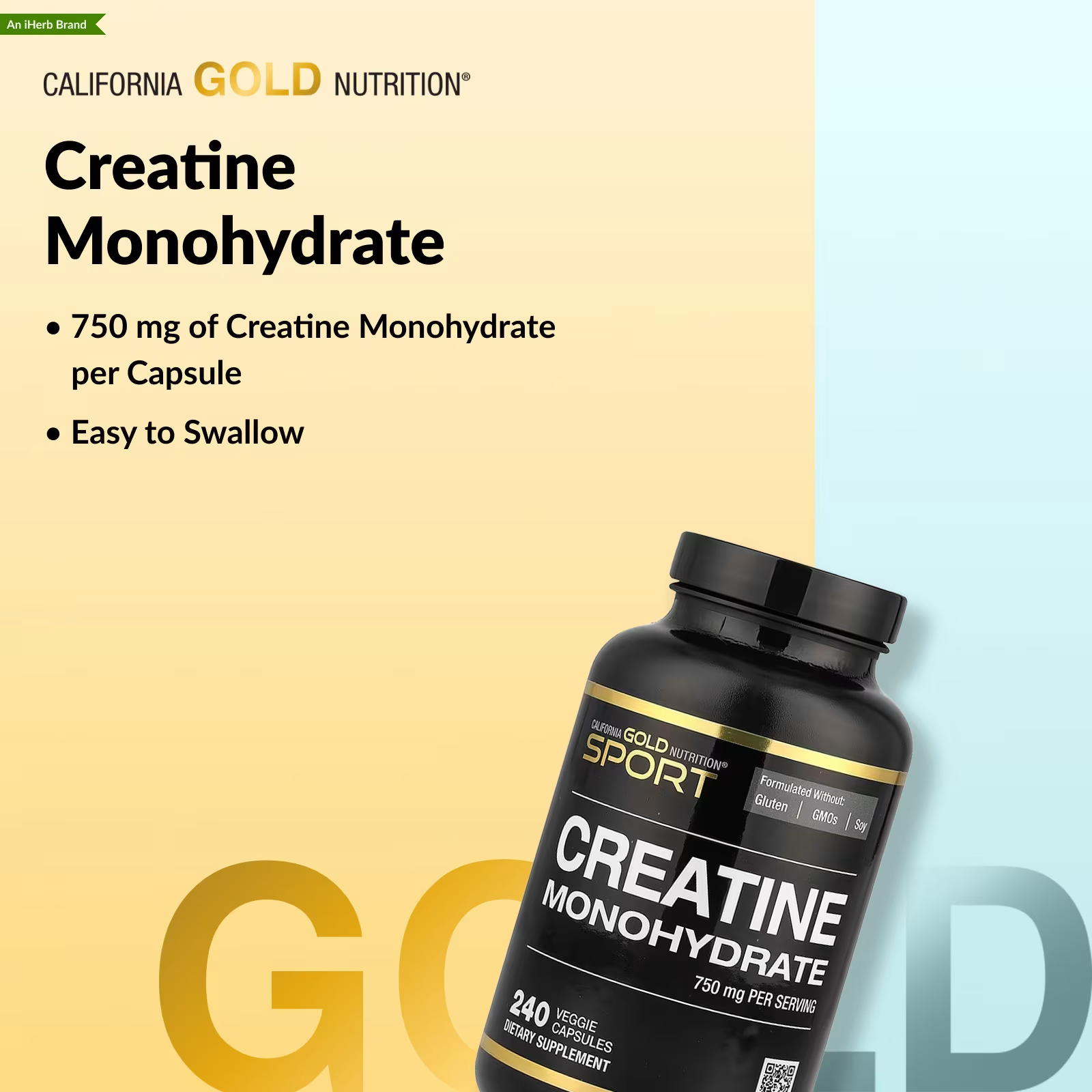 California Gold Nutrition, Sport, Pure Creatine Monohydrate, 750 mg, 240 Veggie Capsules