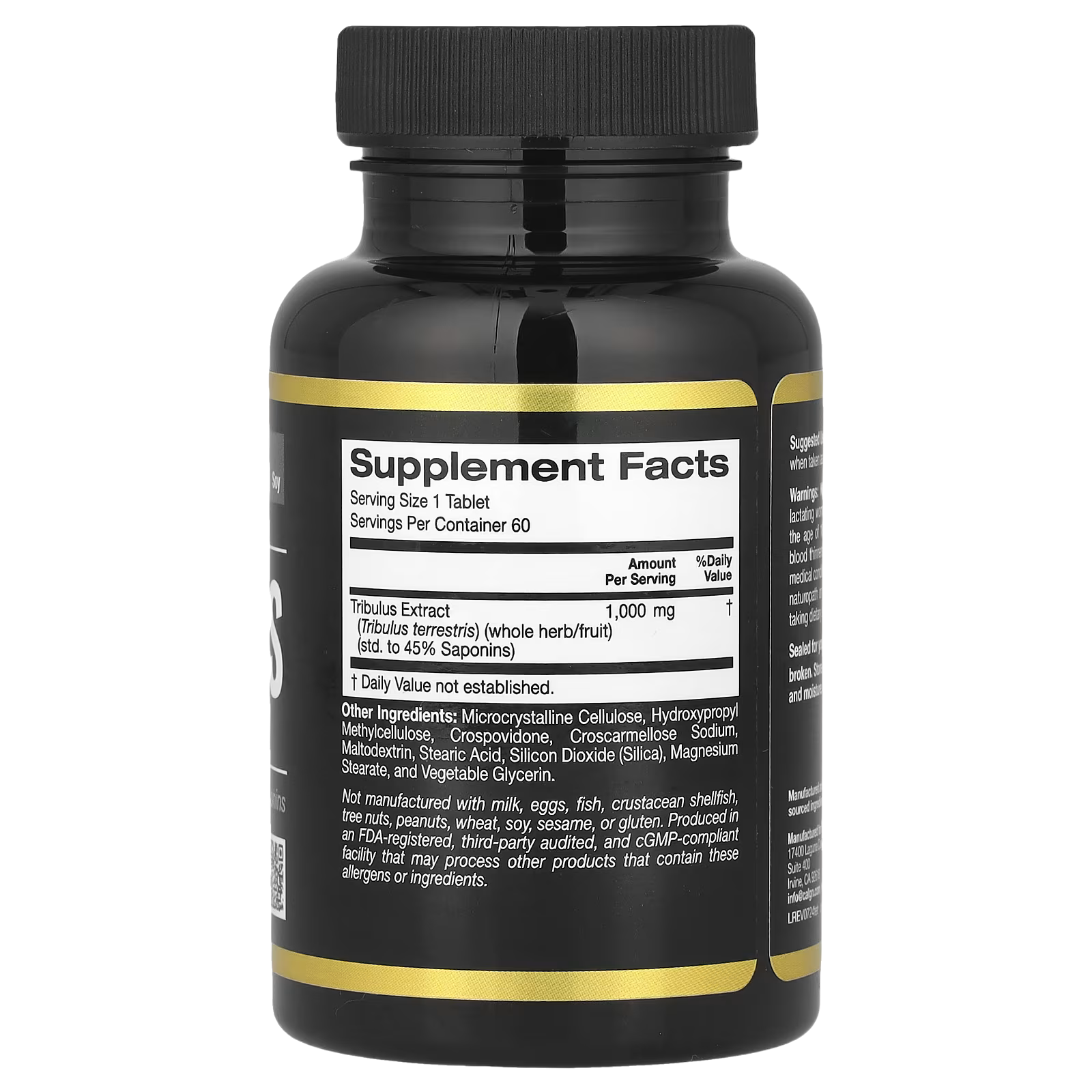 California Gold Nutrition Sport Tribulus contains a standardized Tribulus terrestris extract, with minimum 45% saponins. When taken as directed, this provides a 2-month supply.