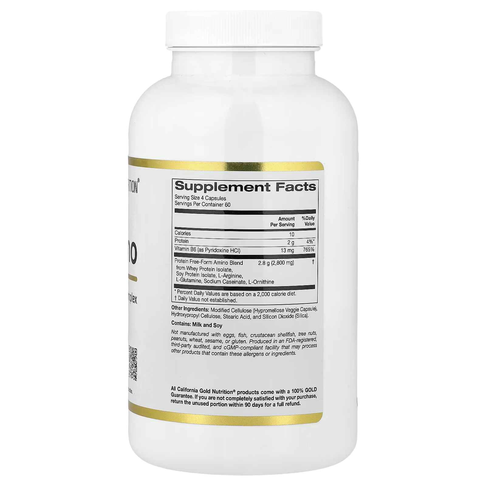 Vitamin B-6 (from Pyridoxine HCI), Protein Free-Form Amino Blend from Whey Protein Isolate, Soy Protein Isolate, L-Arginine, L-Glutamine, Sodium Caseinate, L-Ornithine