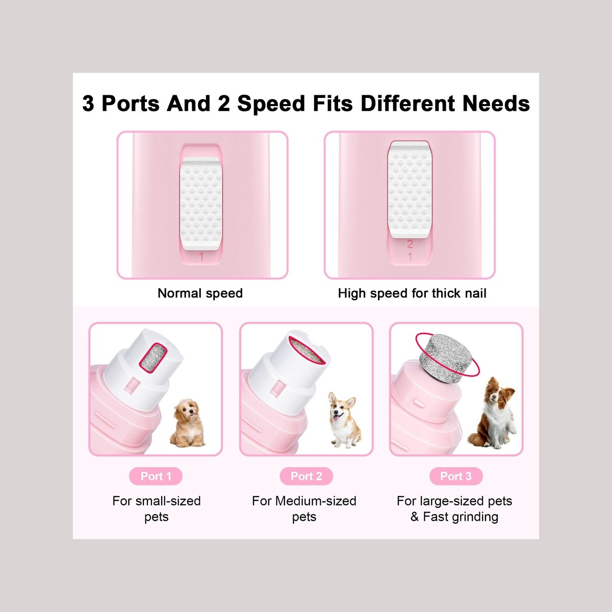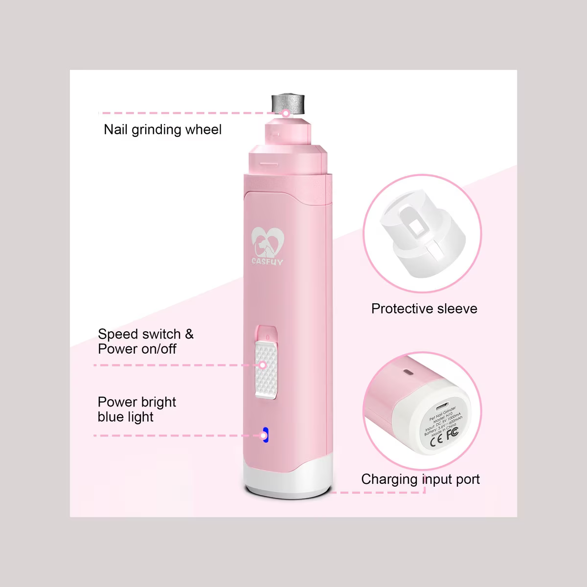 Casfuy Professional 2-Speed Quiet Dog Nail Grinder, Pink