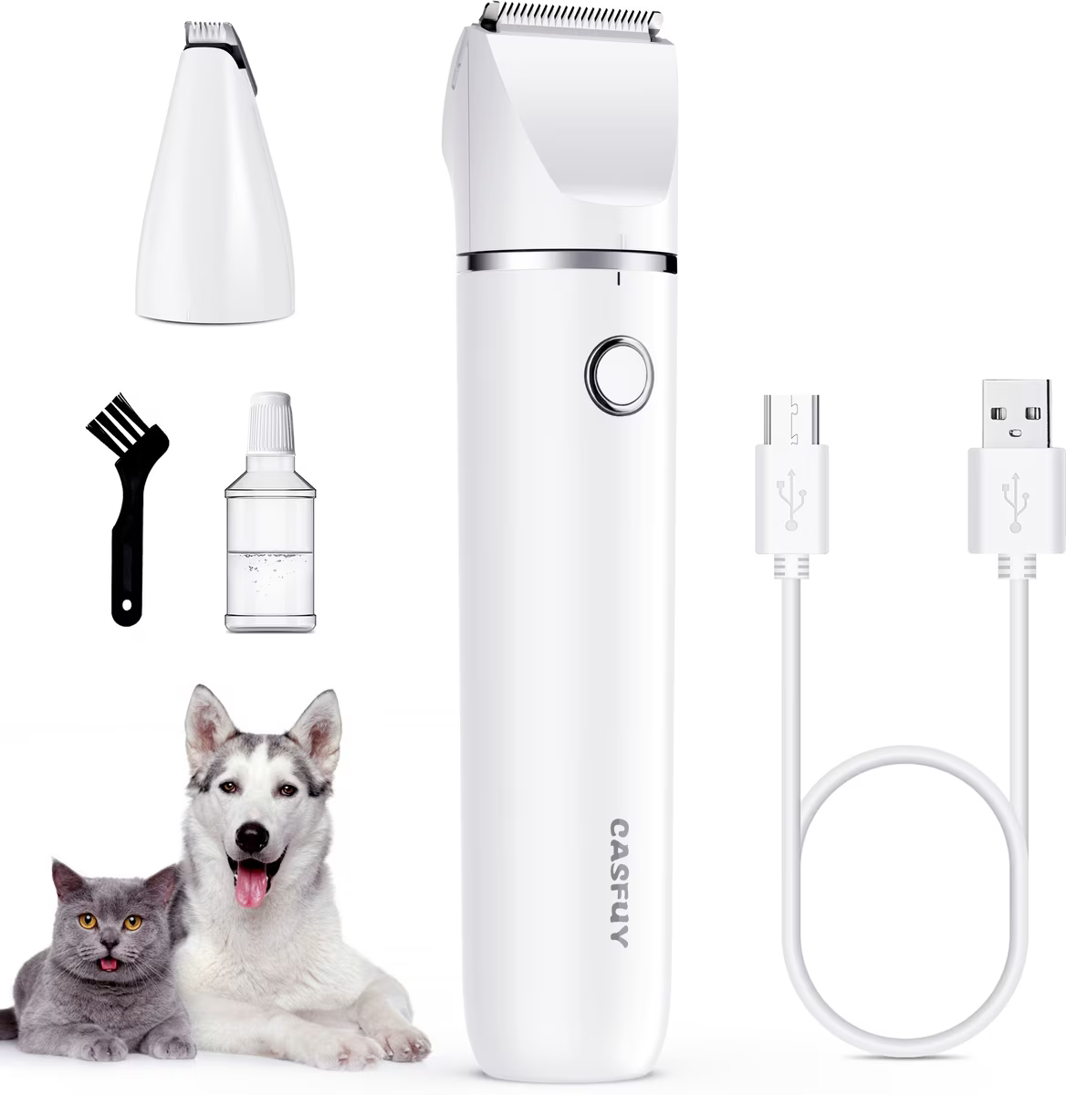 Casfuy Small Low Noise 2 in 1 Trimming Paw Face Narrow Dog hair Clippers, White