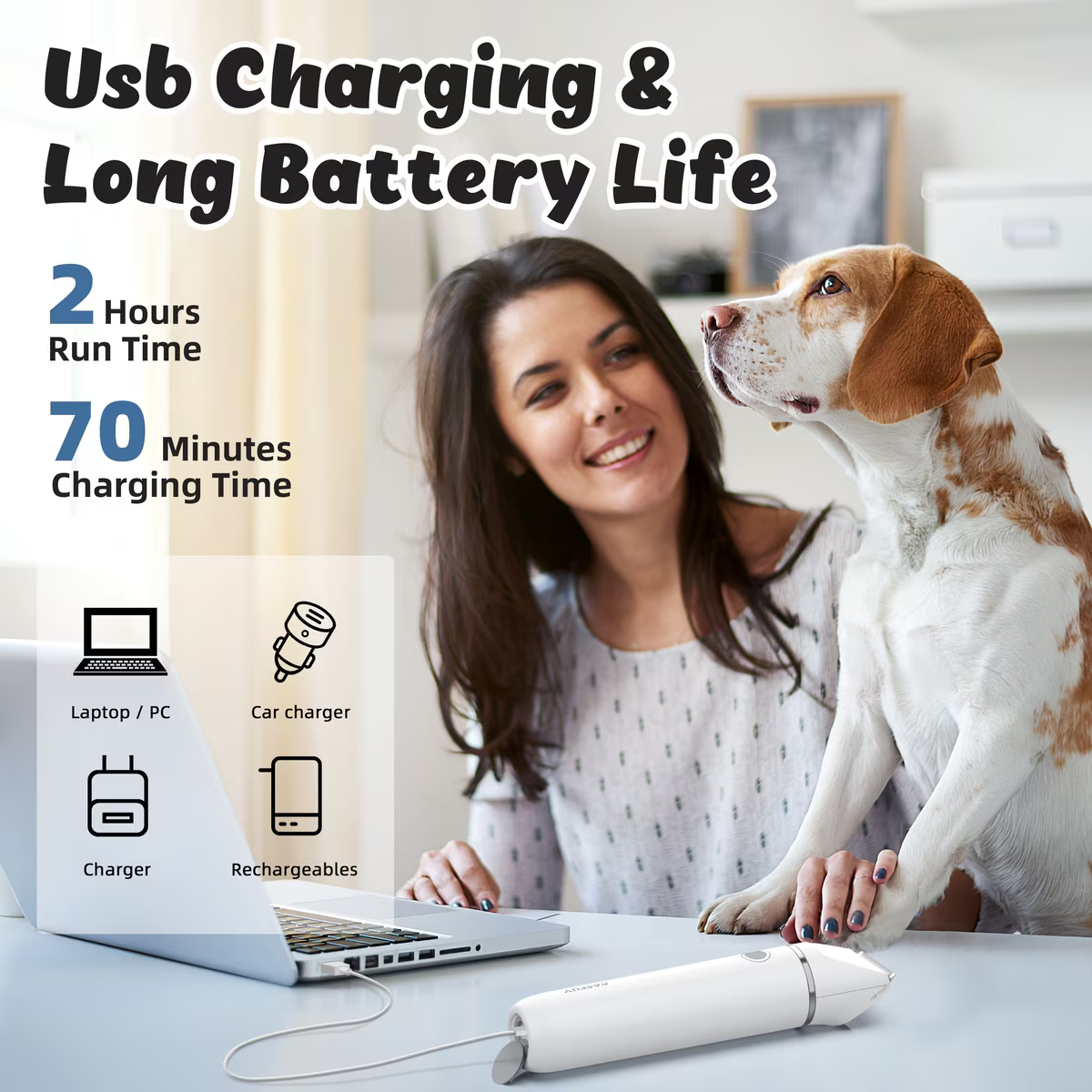 Quiet operation with low vibration helps to keep your furbaby calm.