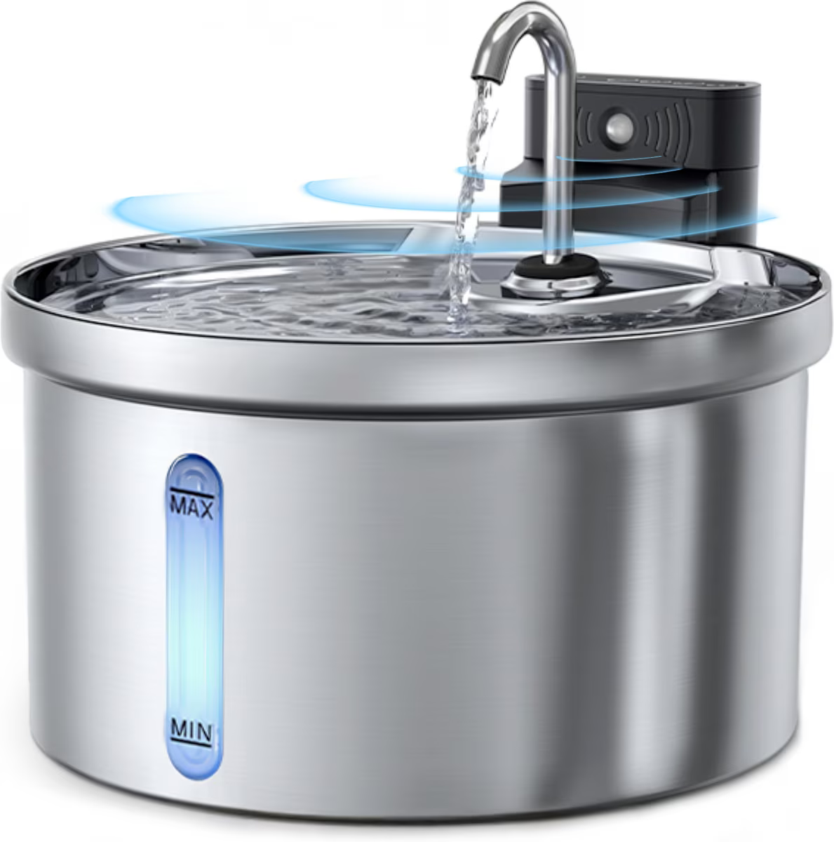 Are you tired of always refilling your cat’s water bowl and dealing with messy wires? Say hello to convenience with the Casfuy Wireless Smart 3-Mode Stainless Steel Cat Water Fountain. This smart, wireless fountain makes life easier while keeping your kitty healthy, happy, and hydrated. Unlike traditional fountains, the unique separation design of water and battery eliminates any risk of electricity in the water. Charging is easy with the detachable battery which can provide up to 30 days of wireless convenience. Plus, the fountain offers three smart modes and two water flow styles—faucet or fountain—to cater to your pet’s preferences. Its four-layer filtration system removes odors, debris, and harmful particles for the cleanest water possible. Made with 304 stainless steel, it’s also durable, easy to clean, and helps prevent bacteria buildup and feline acne. The 118-oz. size can keep your cat hydrated for up to 15 days without constant refills and has a water level window. Plus, it also has a smart low-water shutoff with a red indicator light. Upgrade your cat’s hydration game today with this safe, stylish, and hassle-free water fountain.