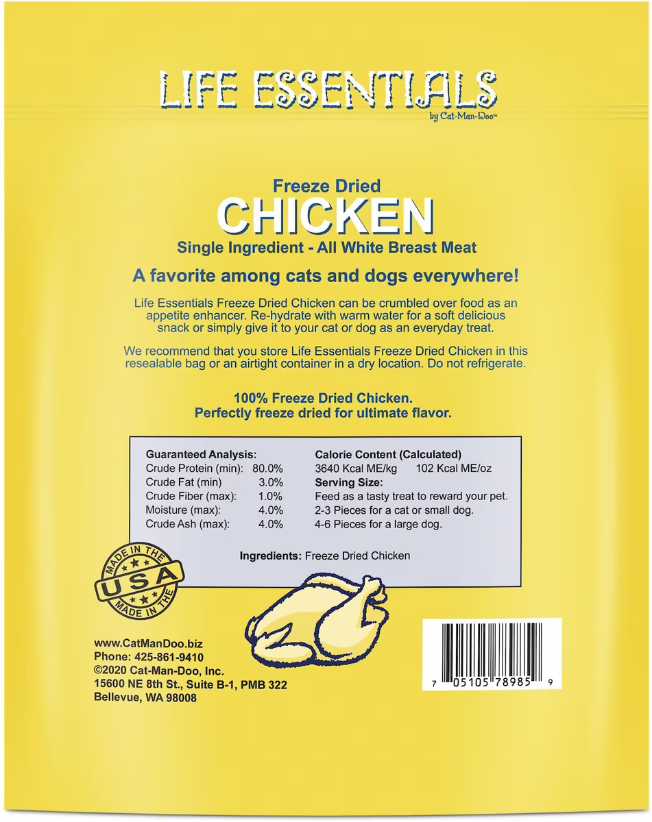 Cat-Man-Doo Life Essentials Chicken Freeze-Dried Cat & Dog Treats, 5-oz bag