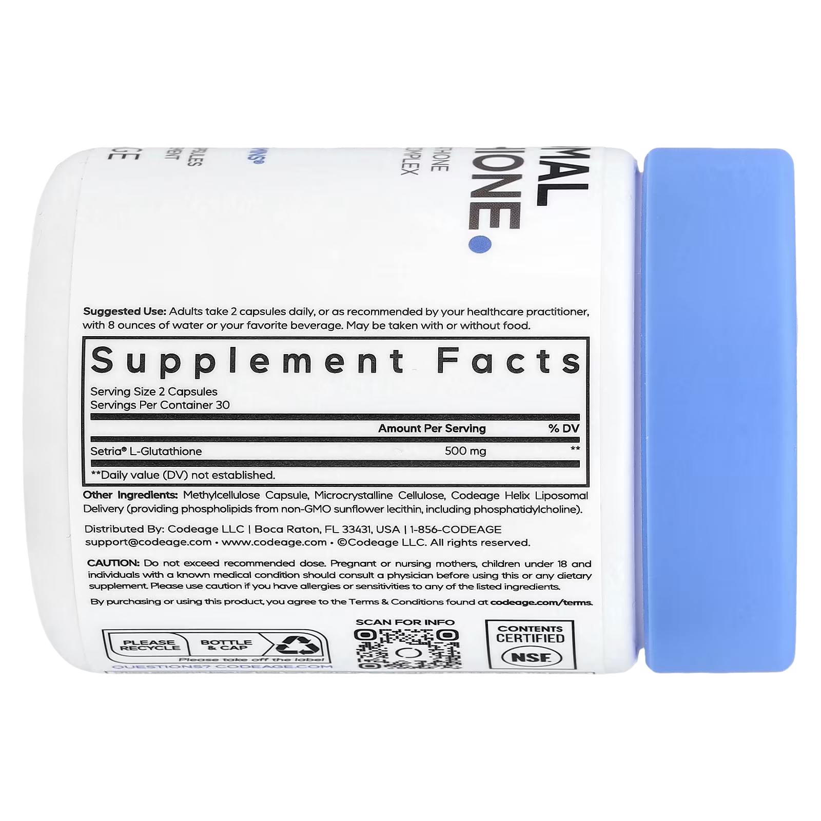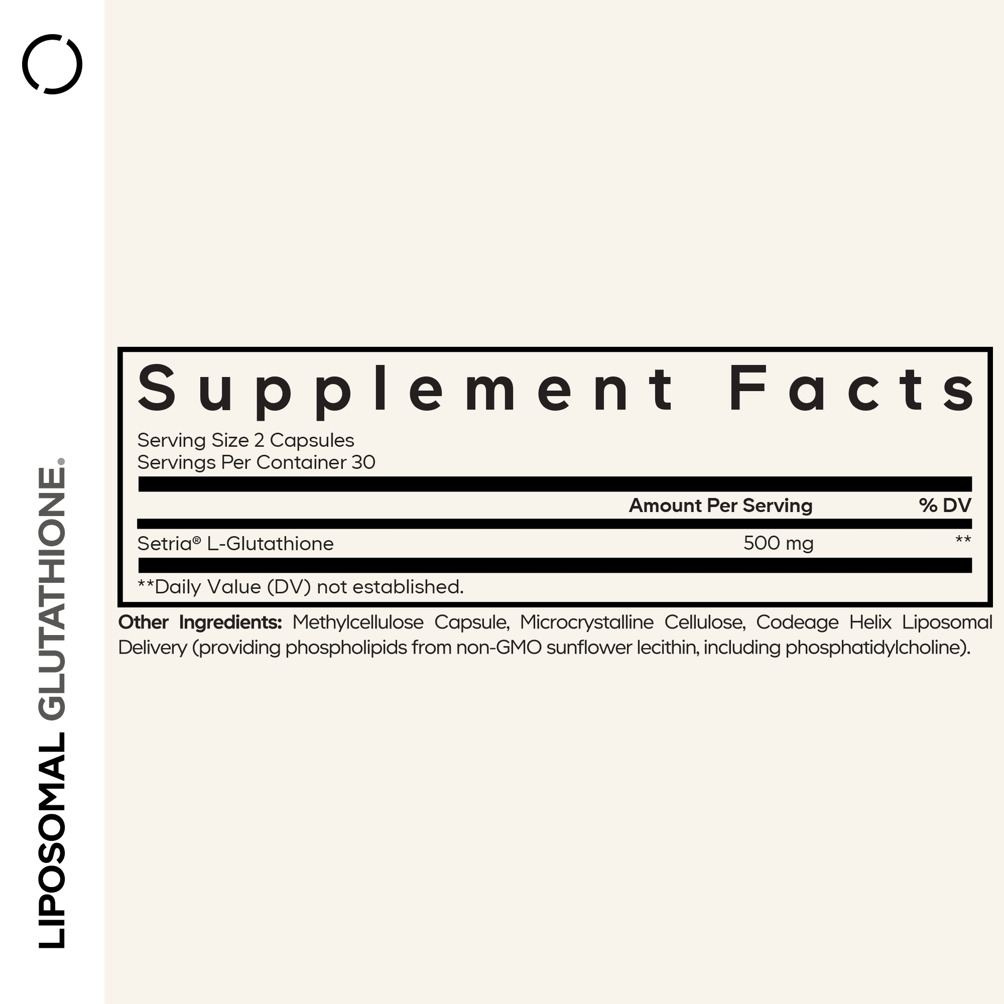Codeage Liposomal Glutathione supplement features 500 mg of Setria® L-Glutathione per serving, a patented form of glutathione known for its unique quality and purity. This advanced supplement also includes a liposomal formula made with a phospholipid complex.