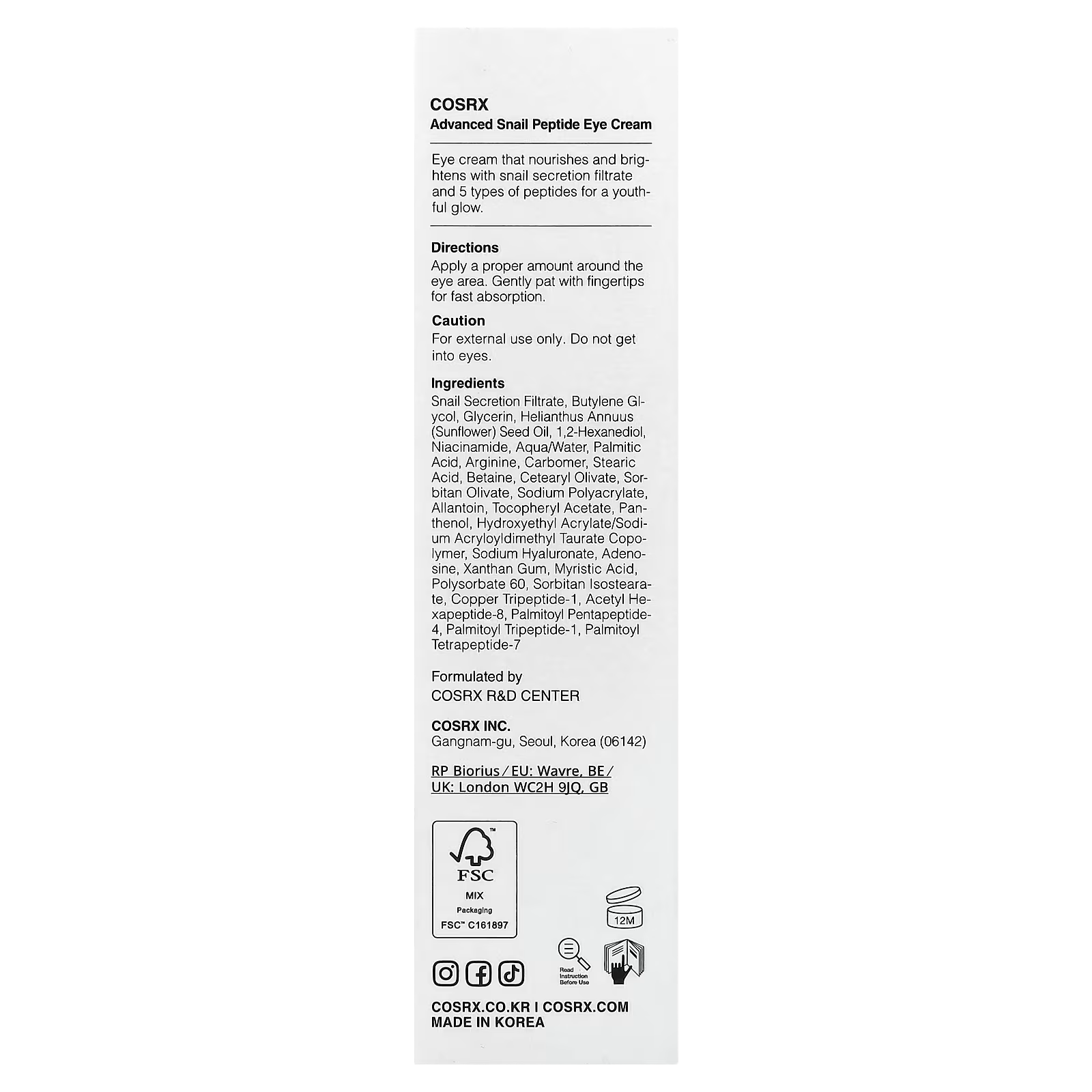 CosRx, Advanced Snail, Peptide Eye Cream, 0.84 fl oz (25 ml)