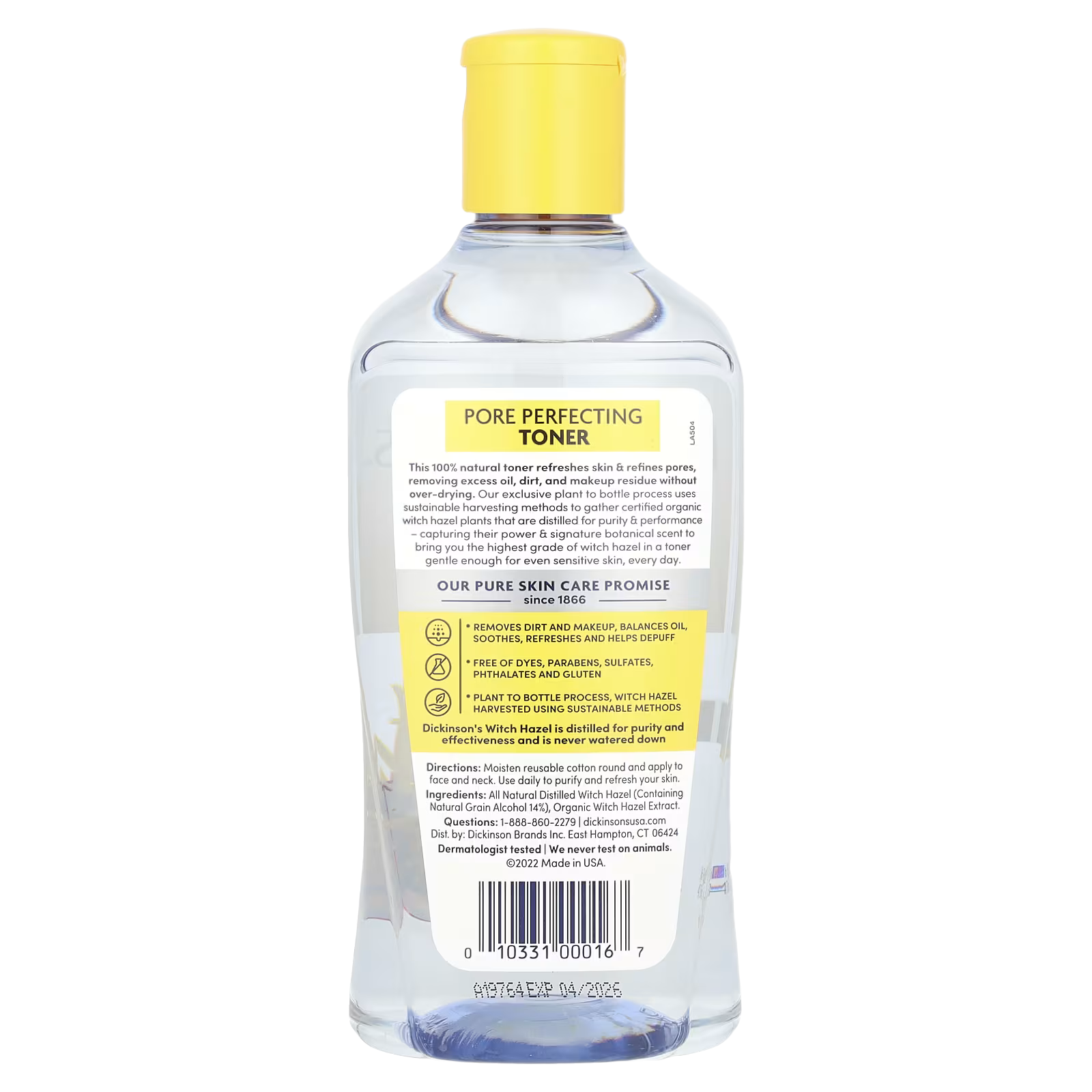 Dickinson’s Witch Hazel is distilled for purity and effectiveness and is never watered down.