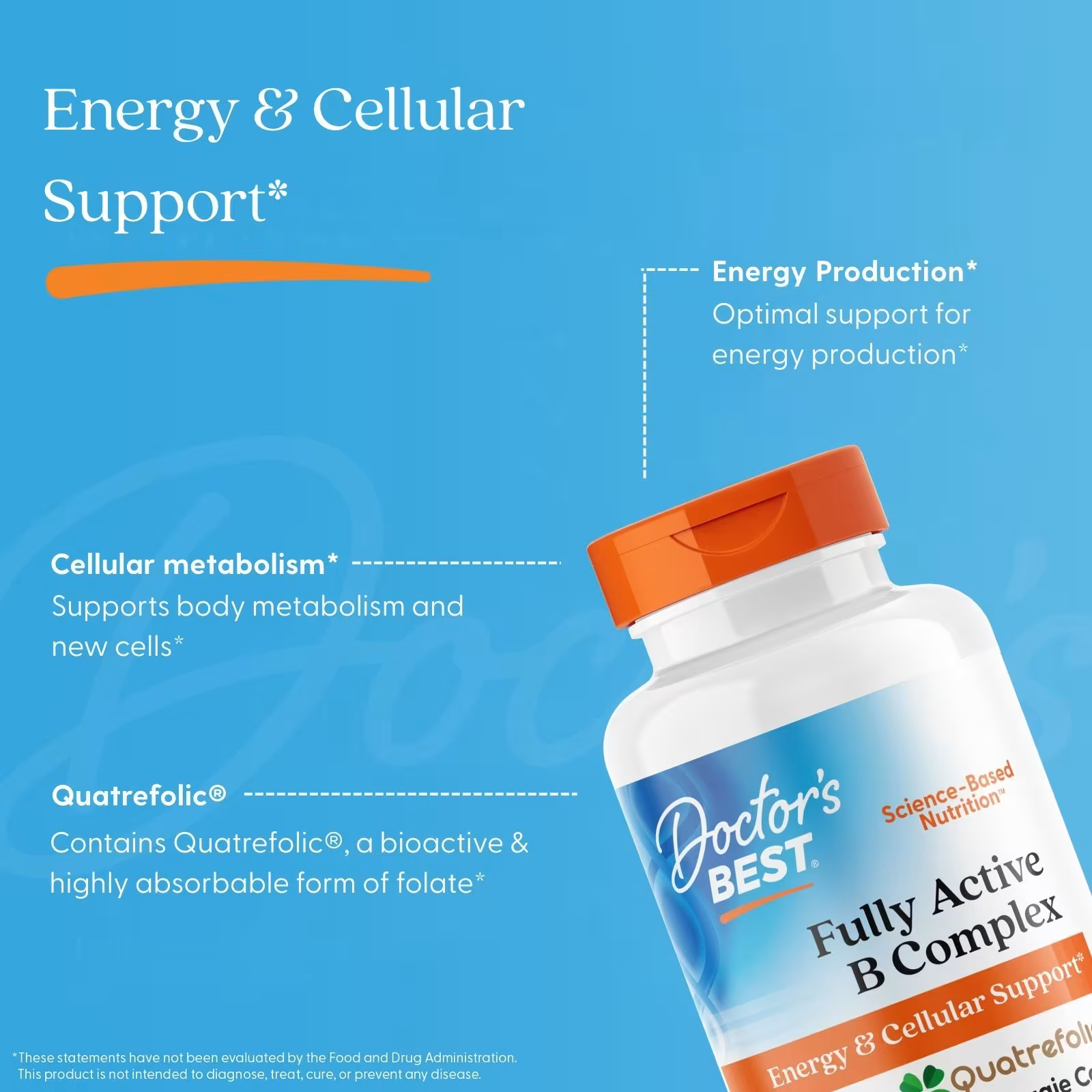 At Doctor’s Best, we value the science of energy. Our Fully Active B Complex is a comprehensive blend of B vitamins that are readily available and highly bioavailable in the body. This unique formula offers optimal support for energy production, cellular health, and overall well-being.