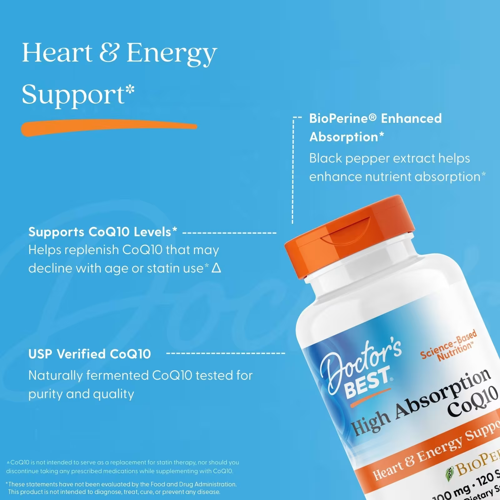 Doctor’s Best, High Absorption CoQ10, 100 mg, 120 Softgels