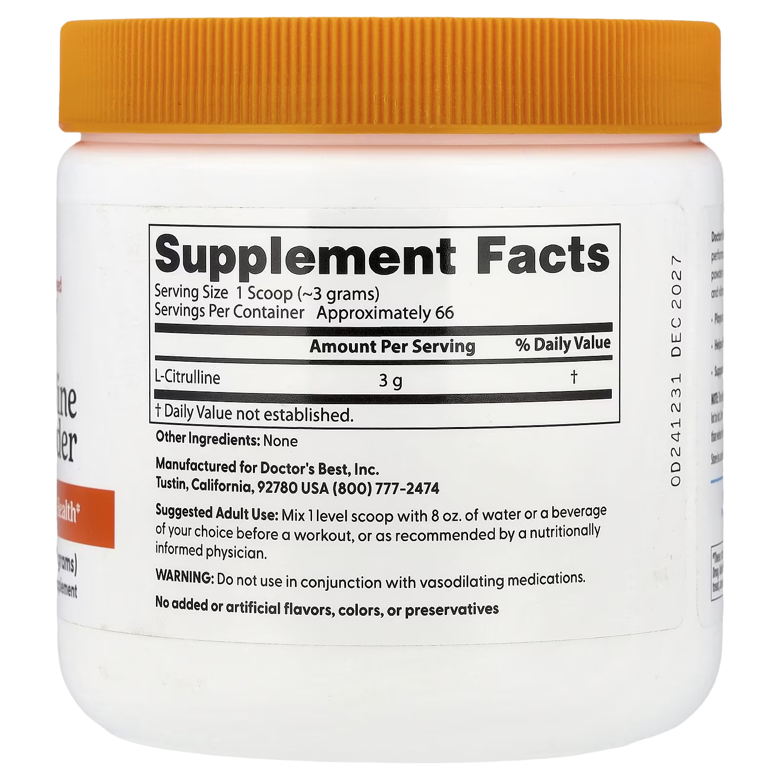 Doctor’s Best L-Citrulline helps maintain peak performance and unwavering energy. Our L-Citrulline powder is carefully crafted to empower an energetic and vibrant lifestyle.