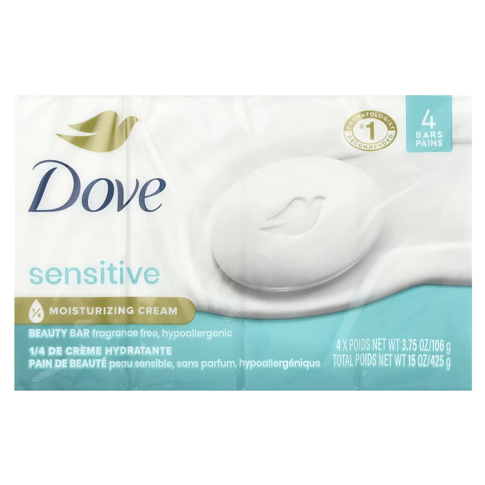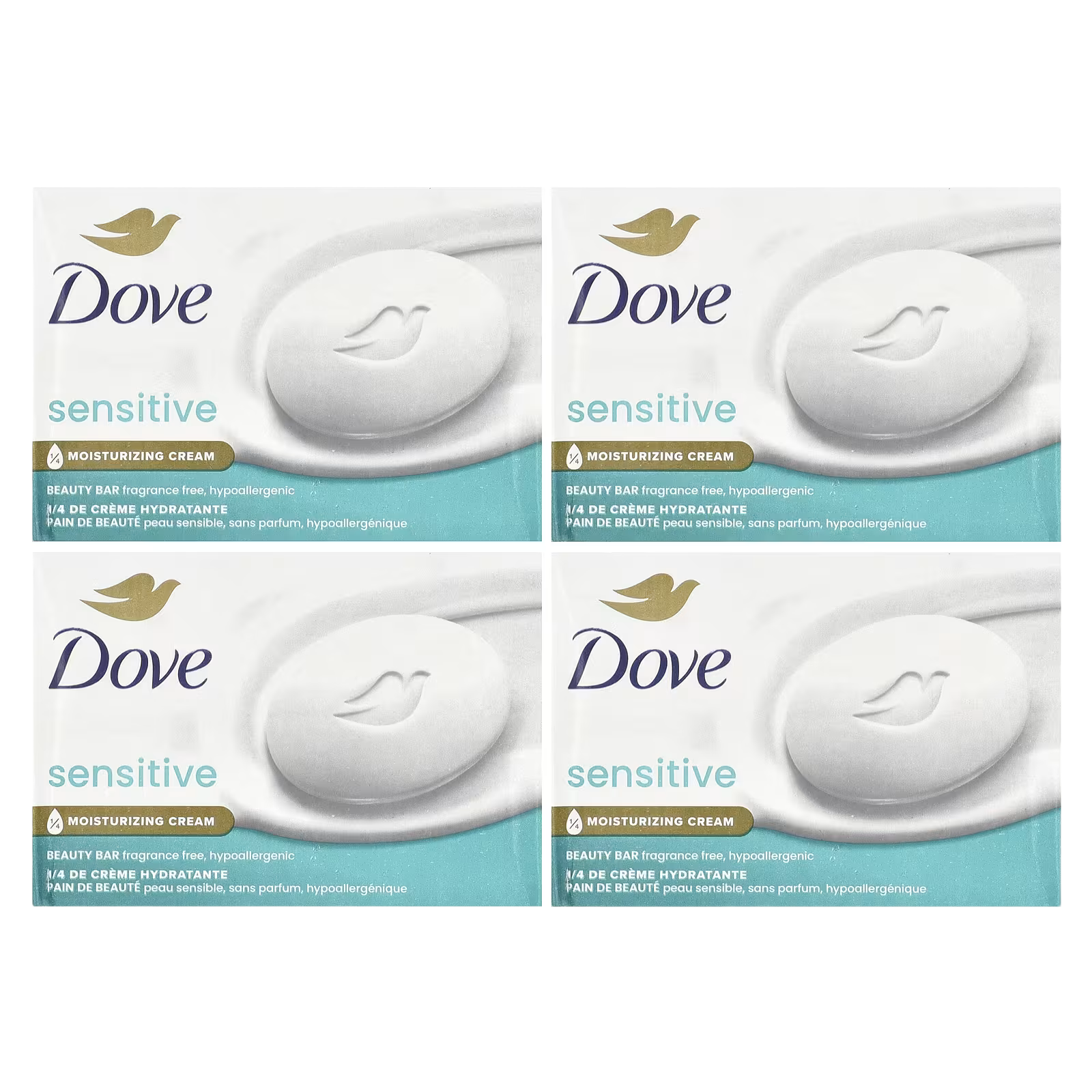 Dove, Beauty Bar Soap, Sensitive Skin, Fragrance Free, 4 Bars, 3.75 oz (106 g) Each