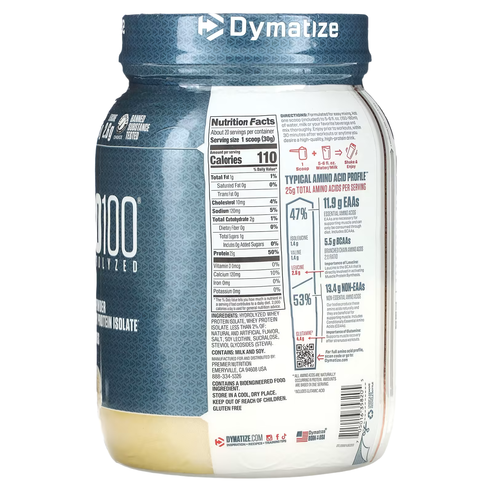 Dymatize, the trusted leader in athletic nutrition for over 25 years, brings you IS0100 Hydrolyzed, 100% Whey Protein Isolate. Each ultra-fast absorbing and easy digesting serving is scientifically formulated to deliver the protein and amino acids you need for next-level muscle recovery and performance.