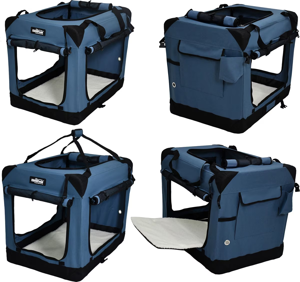 EliteField 4-Door Collapsible Soft-Sided Dog Crate, Blue Gray, L 42-in L x 28-in W x 32-in H