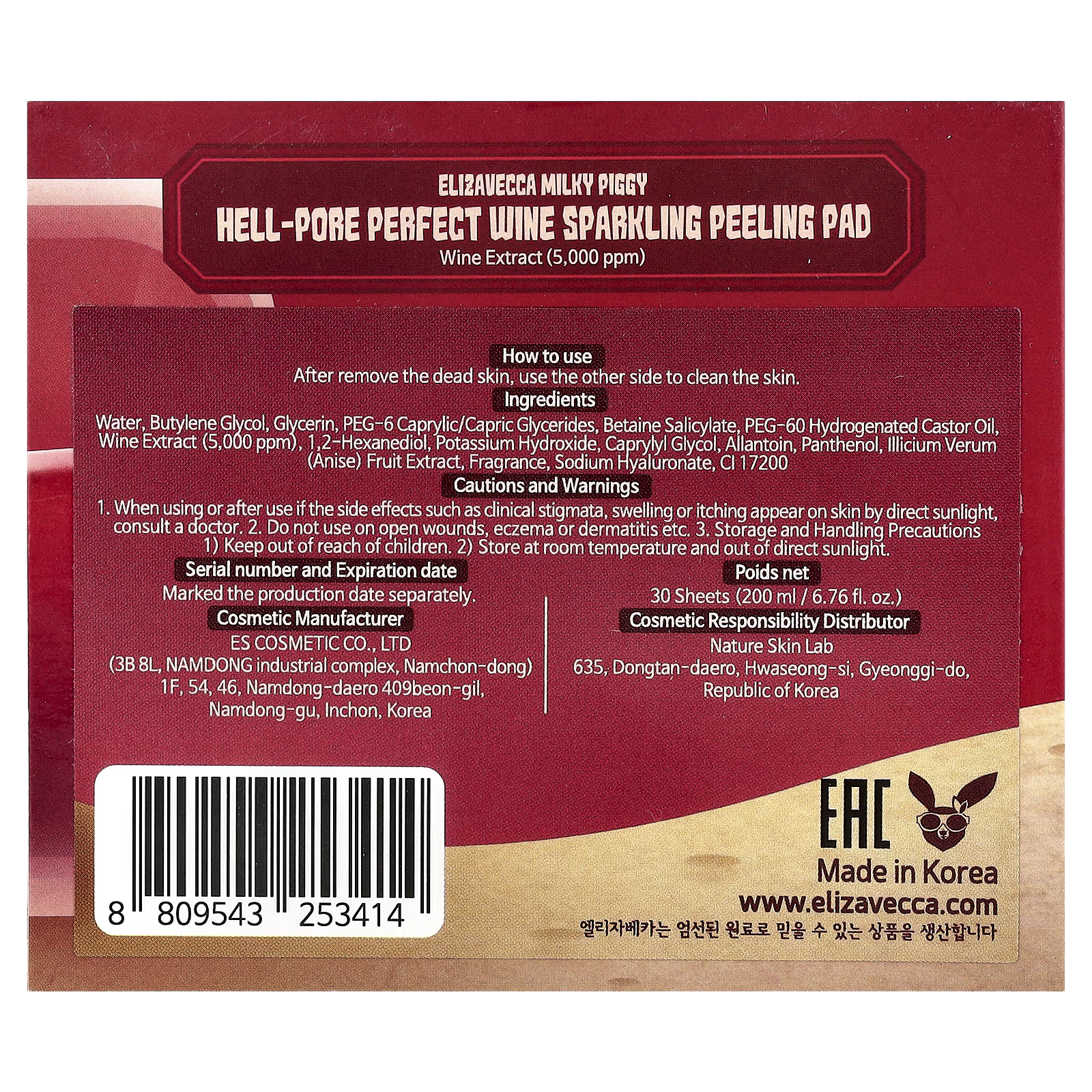 Elizavecca, Milky Piggy, Hell-Pore, Perfect Wine Sparkling Peeling Pad , 30 Sheets, 6.76 fl oz (200 ml)