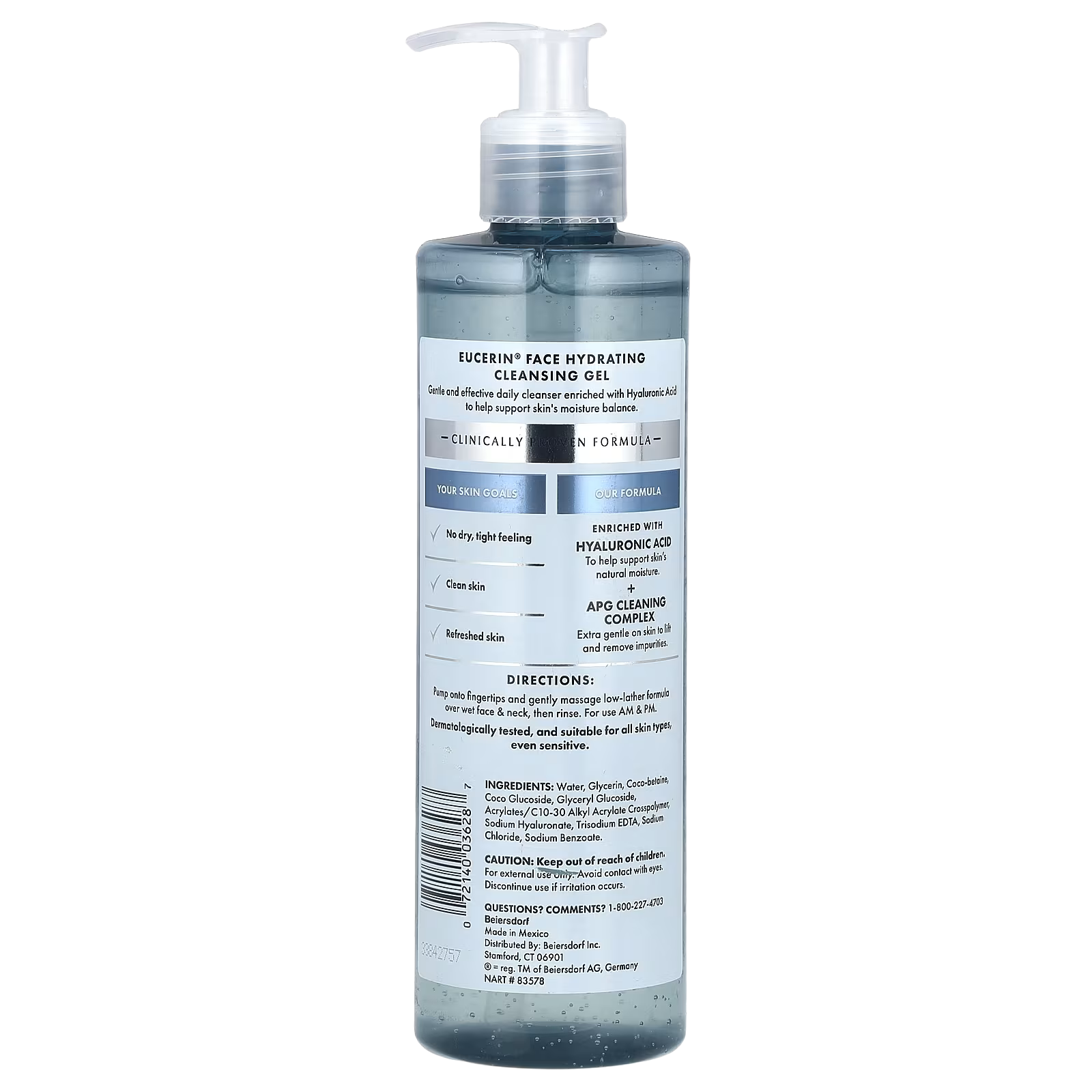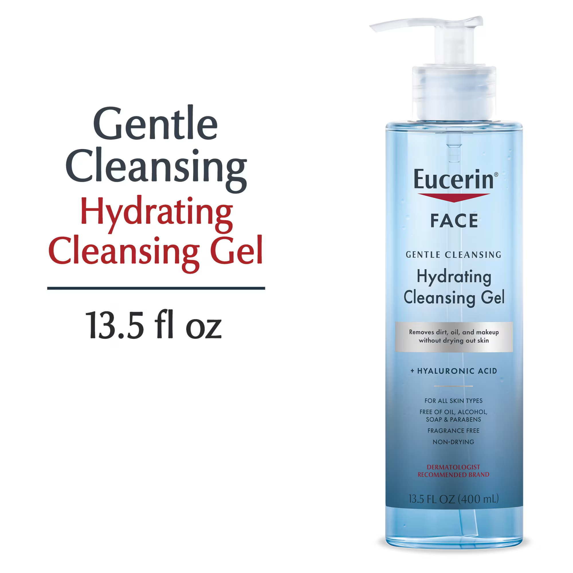 Eucerin, Face, Hydrating Cleansing Gel, Fragrance Free, 13.5 fl oz (400 ml)