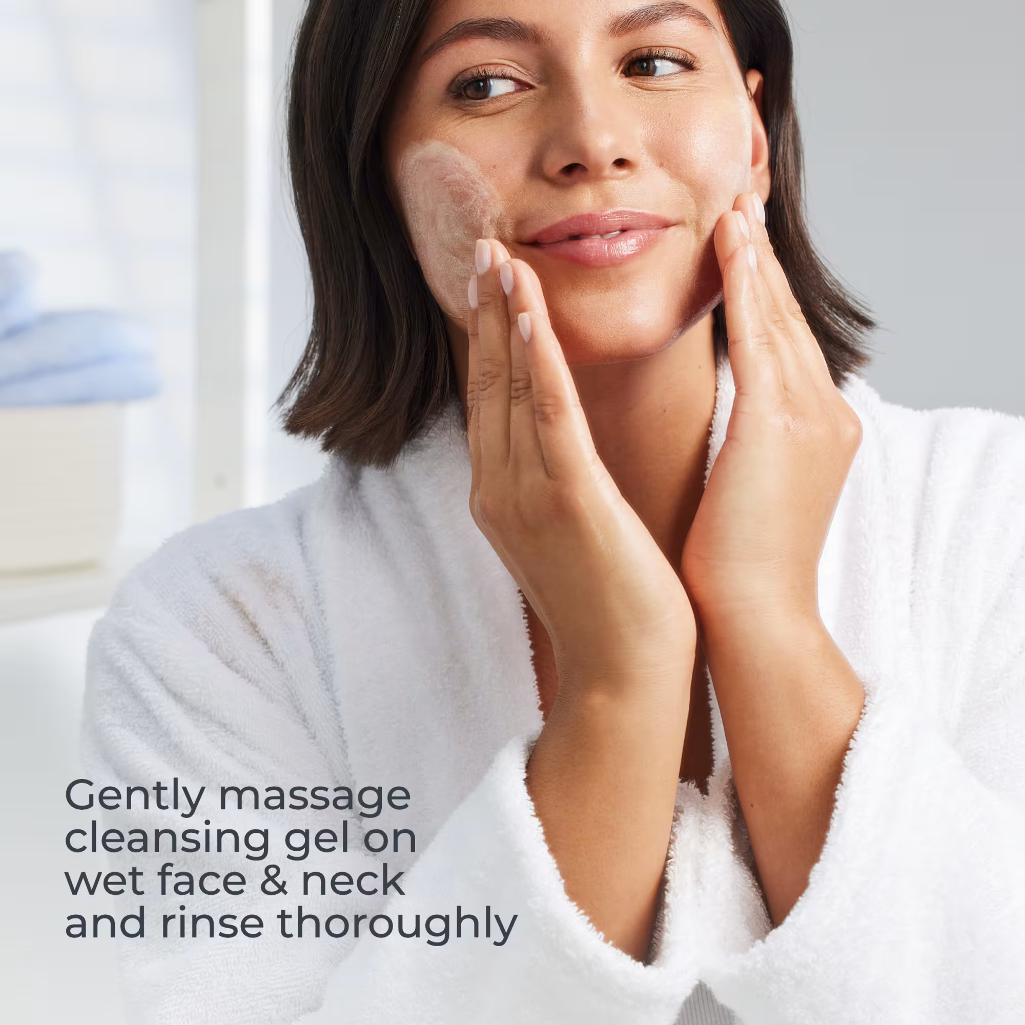 Pump onto fingertips and gently massage low-lather formula over wet face & neck, then rinse. For use AM & PM.