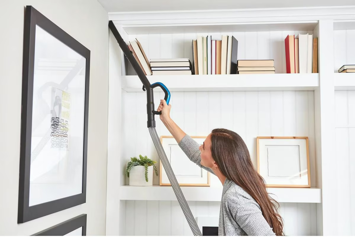 Includes a quick-release handle and extended reach for above-floor cleaning.