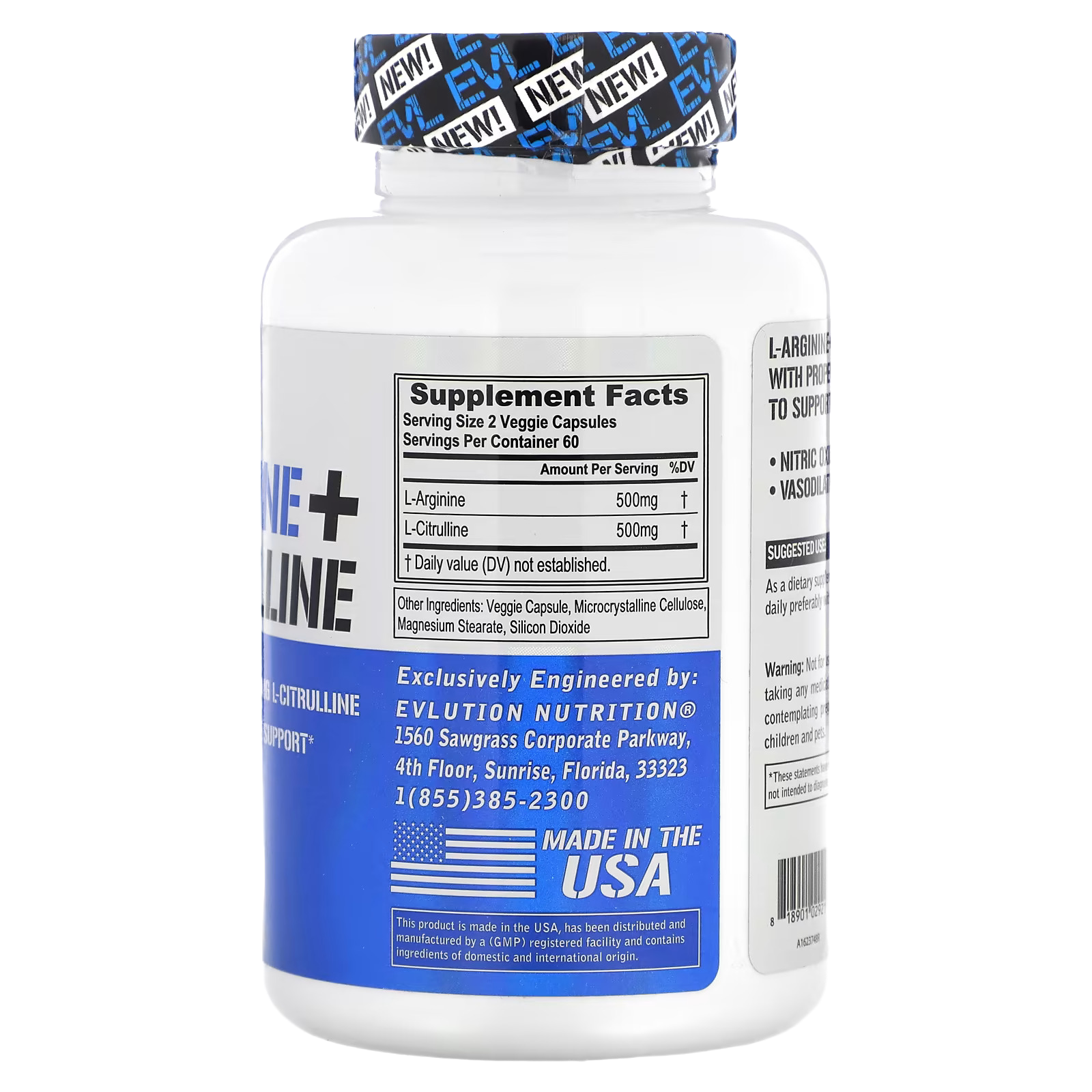 EVLution Nutrition, L-Arginine + L-Citrulline, 120 Veggie Capsules