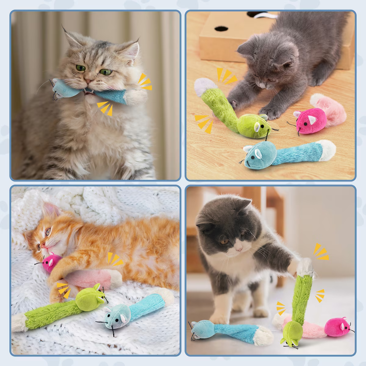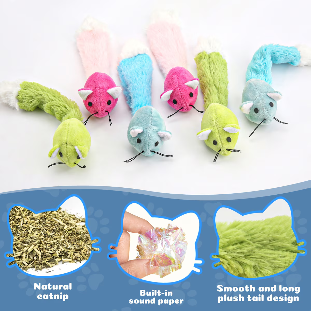 The toys feature realistic, soft bodies and crinkle-filled tails to stimulate your furbaby’s natural hunting instincts.