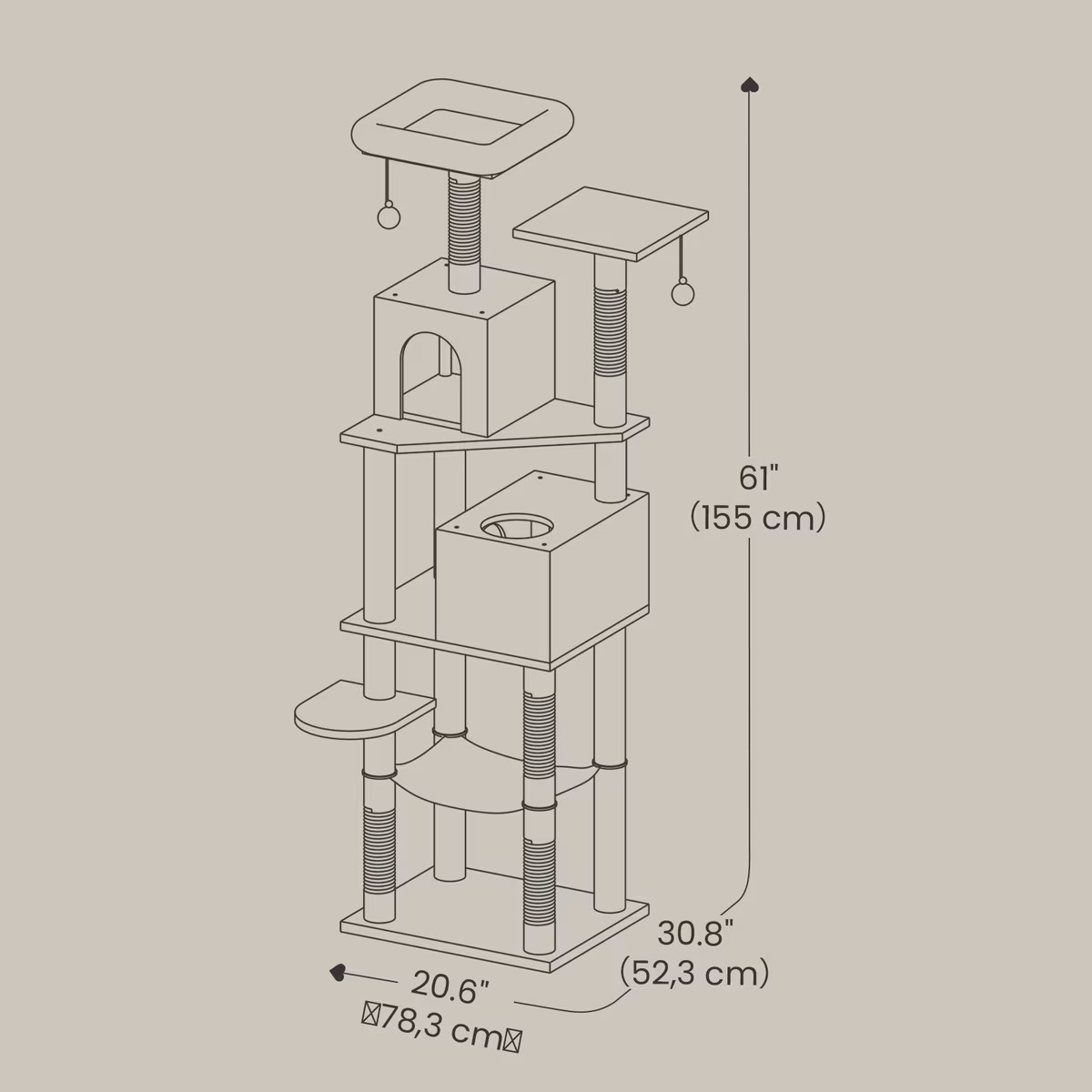 FEANDREA Multi-Level Cat Tree, 61-in, Beige