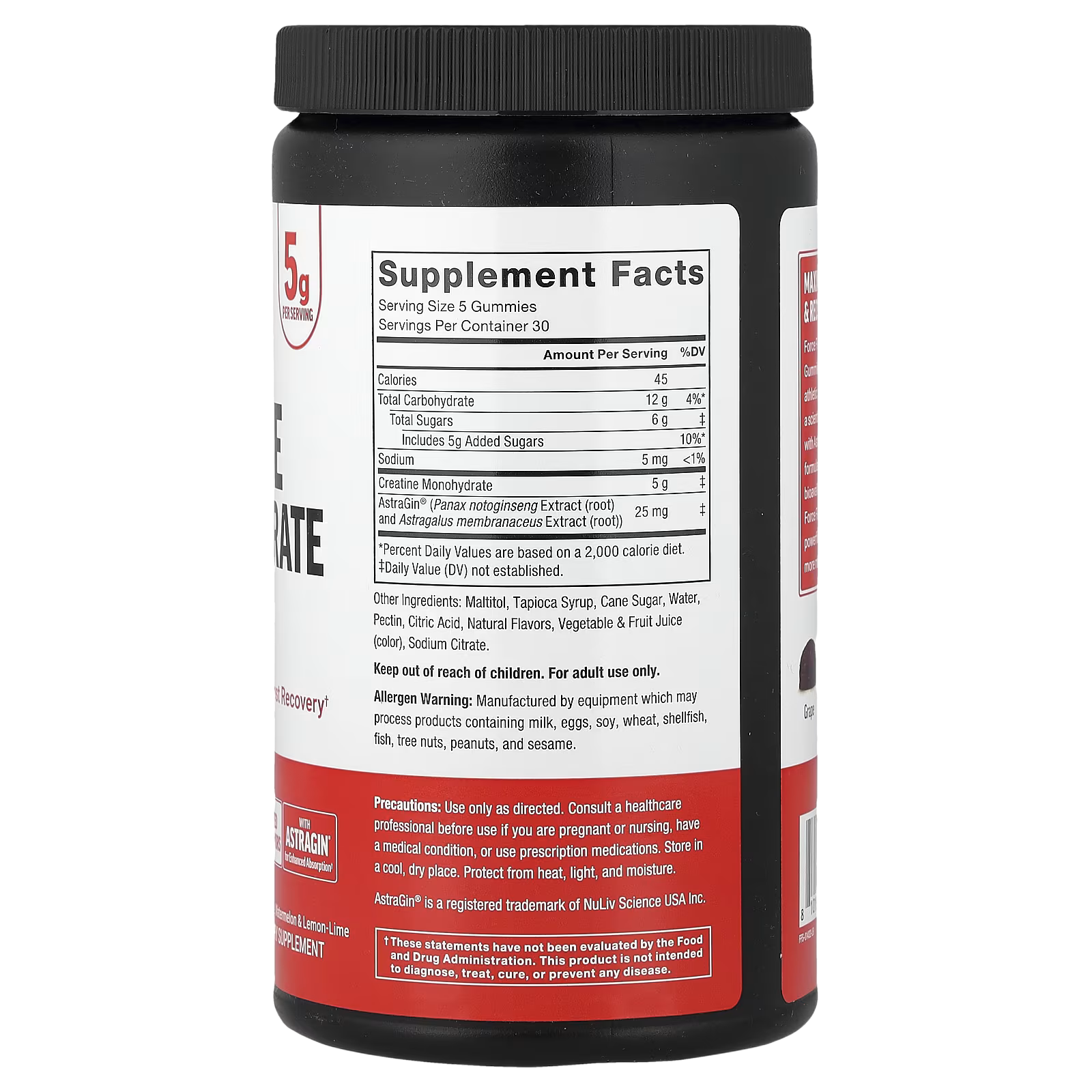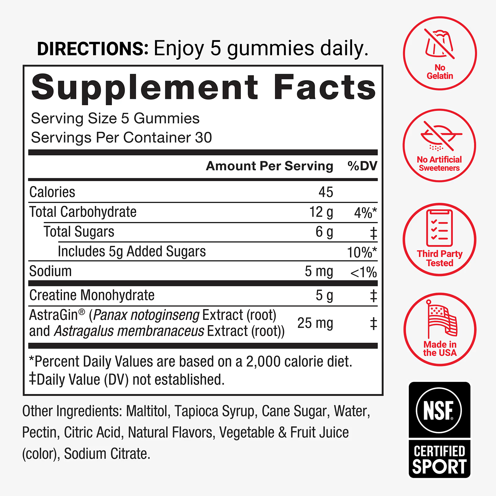 Force Factor® Creatine Monohydrate Gummies are made to maximize your athletic performance. Every dose provides a scientifically proven 5g of creatine paired with AstraGin®, a patented ginseng extract formulated to improve absorption and bioavailability. Delicious and convenient, Force Factor Creatine Gummies are a powerful way to help you lift heavier, build more muscle, and recover faster.