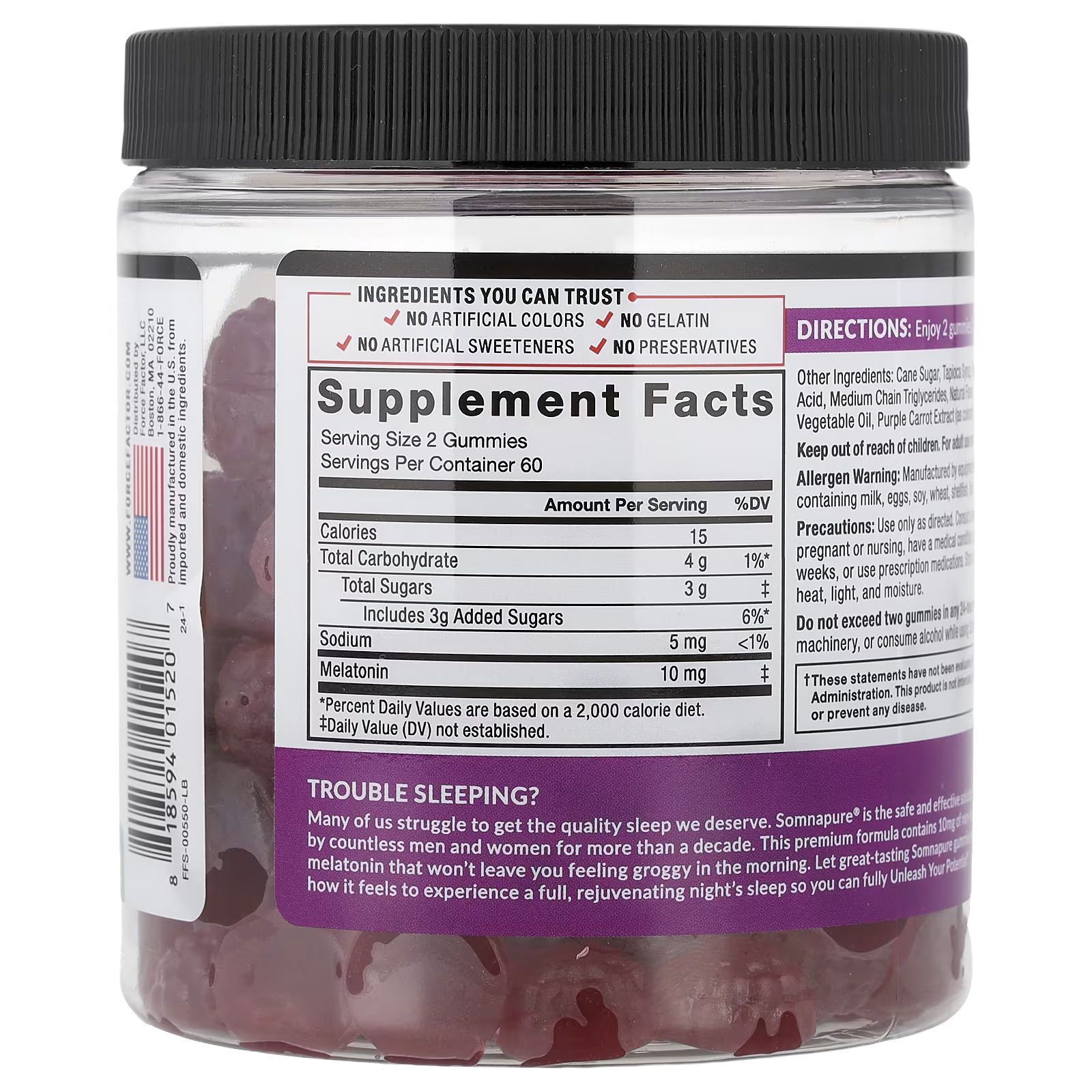 Force Factor, Somnapure®, Great Tasting Melatonin Gummies, Dream Berry, 120 Gummies (5 mg per Gummy)