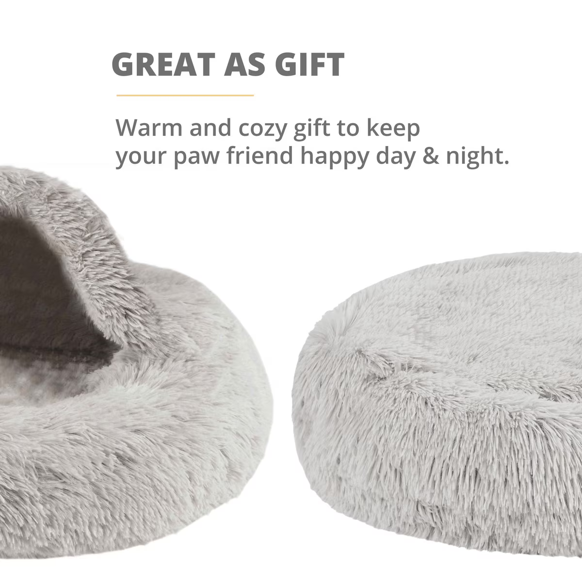 Designed with a raised rim and comfy hooded cover, it provides warmth and a sense of security for your pooch and helps him calm down faster, ease anxiety and sleep well.