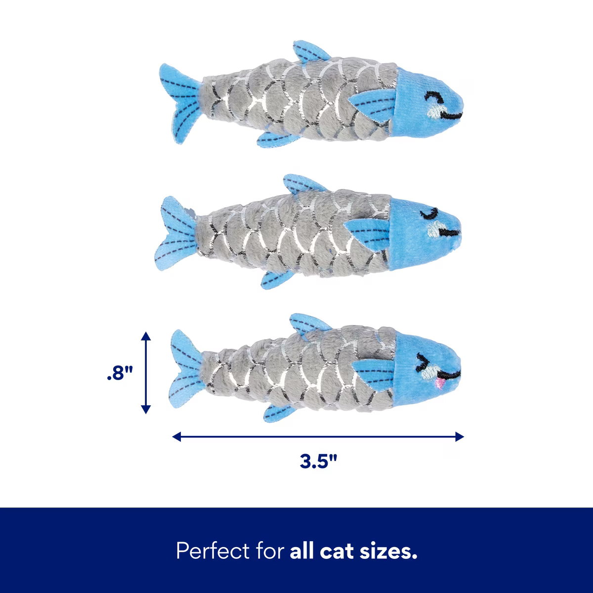 Frisco Coastal Sardine Interactive Plush Cat Toy with Silvervine & Catnip, 4 count